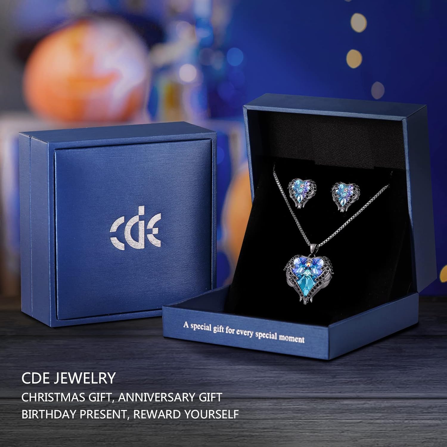 CDE Mothers Day Jewelry Set for Women, Angle Wing Heart Pendant Necklaces and Earrings with Birthstone, Birthday/Anniversary Christmas Jewelry Gift for Women Wife Her