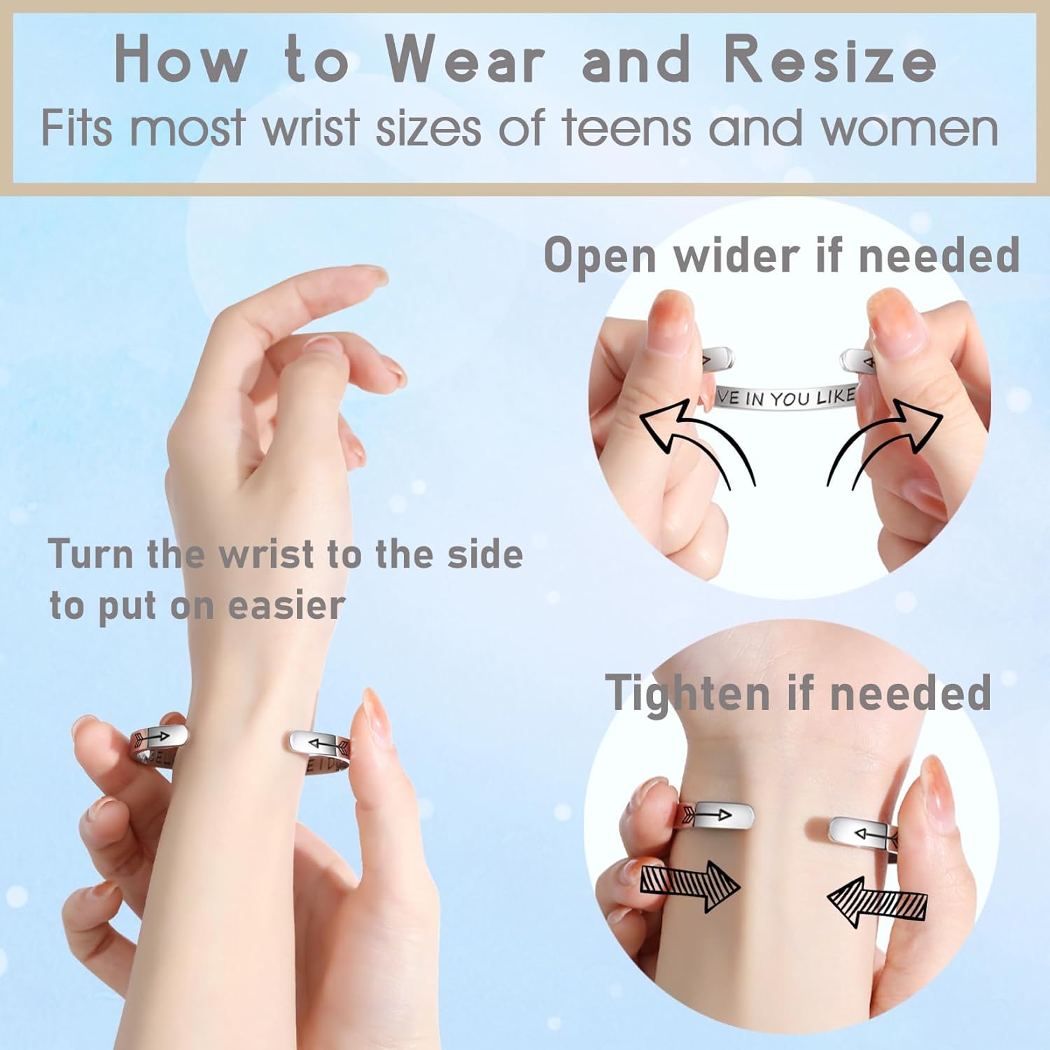 - High Quality : The cuff bracelet is made using premium stainless steel for durable and anti-tarnish. Clear enough inscription for easily reading and notice. Smooth and comfortable for daily wear.