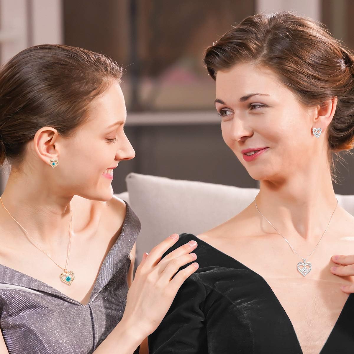 CDE Forever Love Heart Necklaces for Women, Wedding Anniversary, Birthday Mothers Day Christmas Day Gifts for Mom, Mother, Wife, friend, S925 Silver Jewelry with Birthstone Pendant