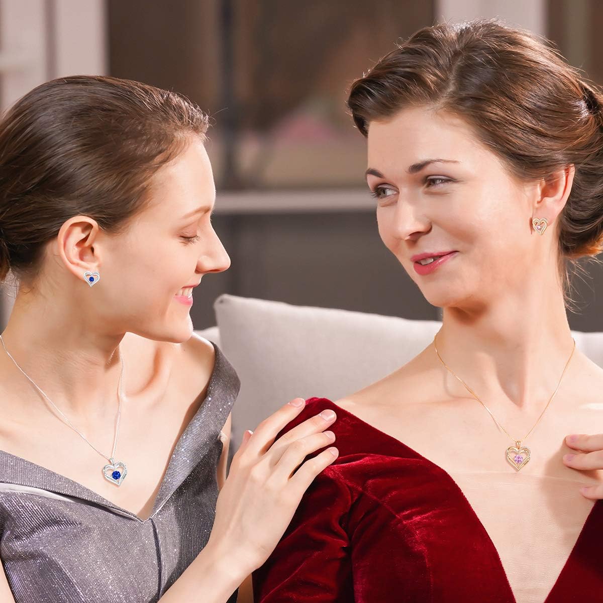 CDE Forever Love Heart Necklaces for Women, Wedding Anniversary, Birthday Mothers Day Christmas Day Gifts for Mom, Mother, Wife, friend, S925 Silver Jewelry with Birthstone Pendant