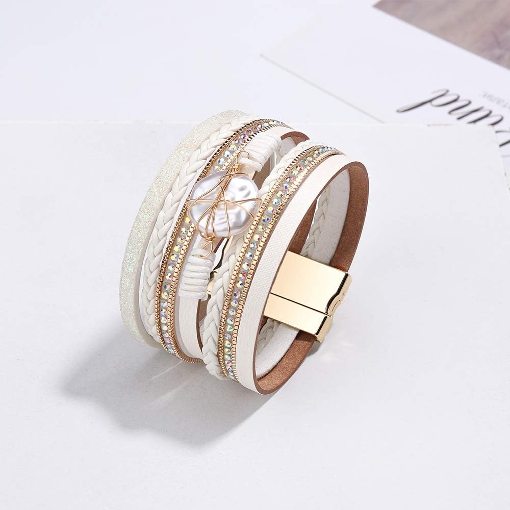 - 【UNIQUE DESIGN】 Our gorgeous and attractive leather bracelet features multiple strands of leather cords combination in different texture, adorned with circle shape pearls and small rhinestones. You can wear our wrap bracelet on different occasions, no matter shopping, working, party, dance or dating, this bracelet will attract a lot of attention, you'll get more compliments.