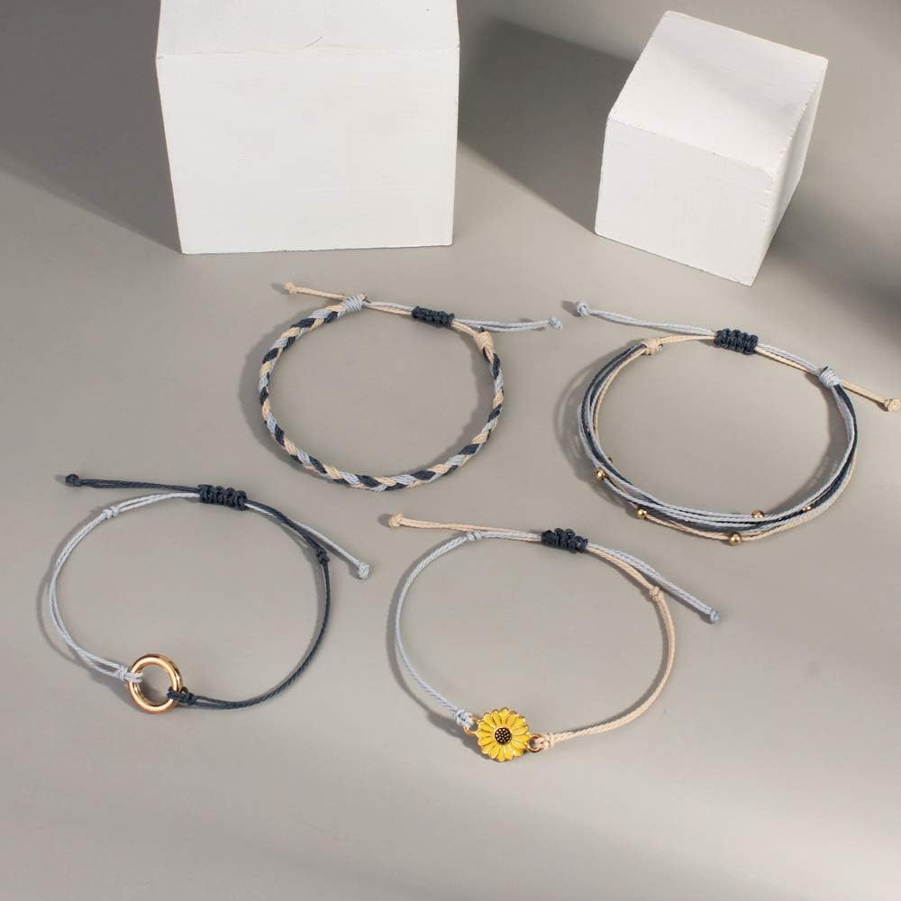 FANCY SHINY Sunflower String Bracelet Boho Braided Rope Wrap Bracelets Cute Summer Beach Surfer Jewelry for Women Christmas Gifts