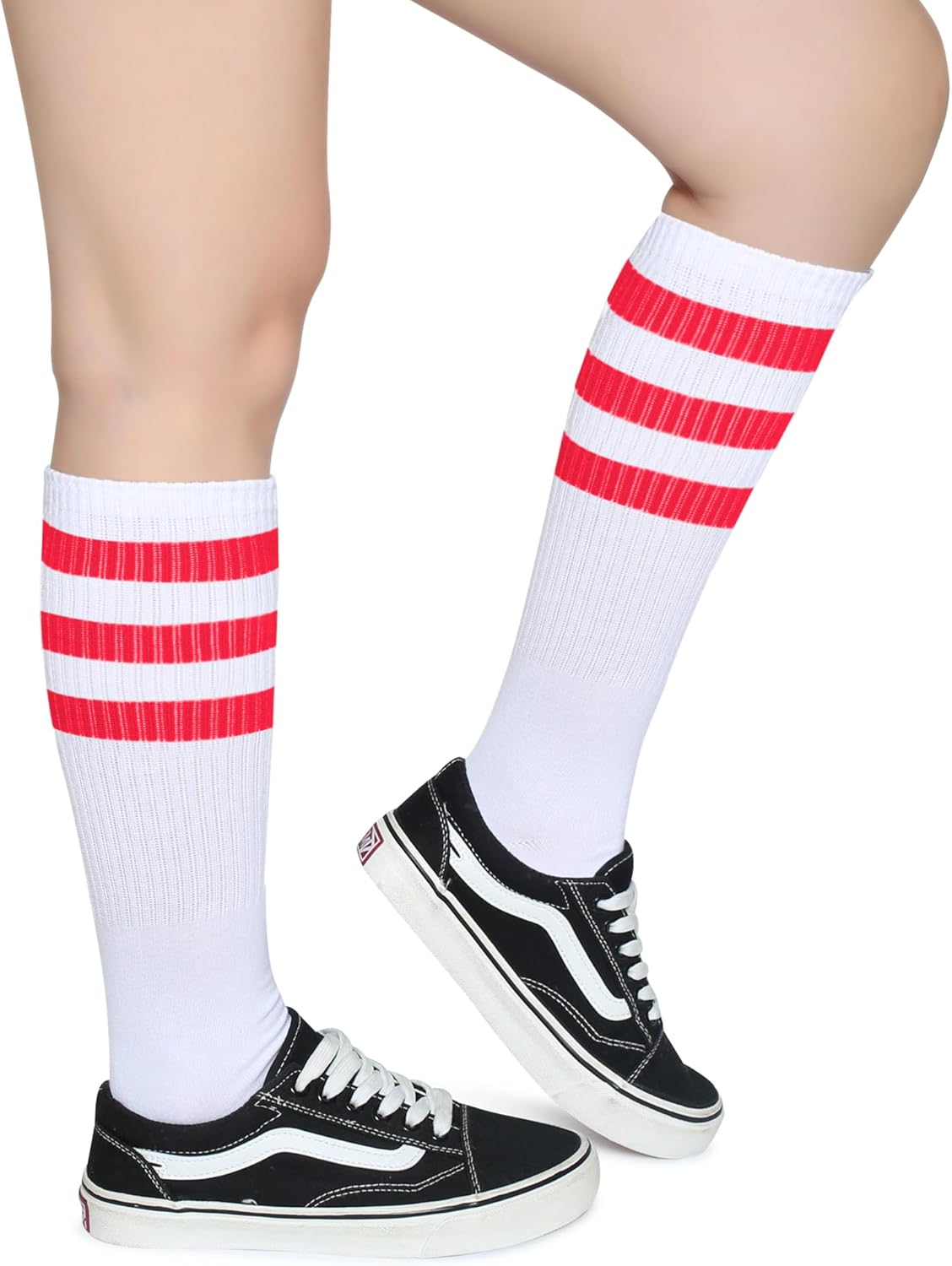 - Classic Triple Stripes – Over the calf socks with three stripes at the top, which will fit for your legs, the high elastic bands at the top of socks will make you feel comfortable for all day wear!