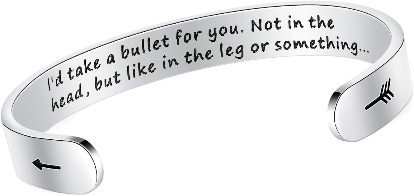 - Funny & Meaningful : This bracelet for women teens reads "I'd take a bullet for you. Not in the head, but like in the leg or something". It's a great reminder to let her know you will always be there.