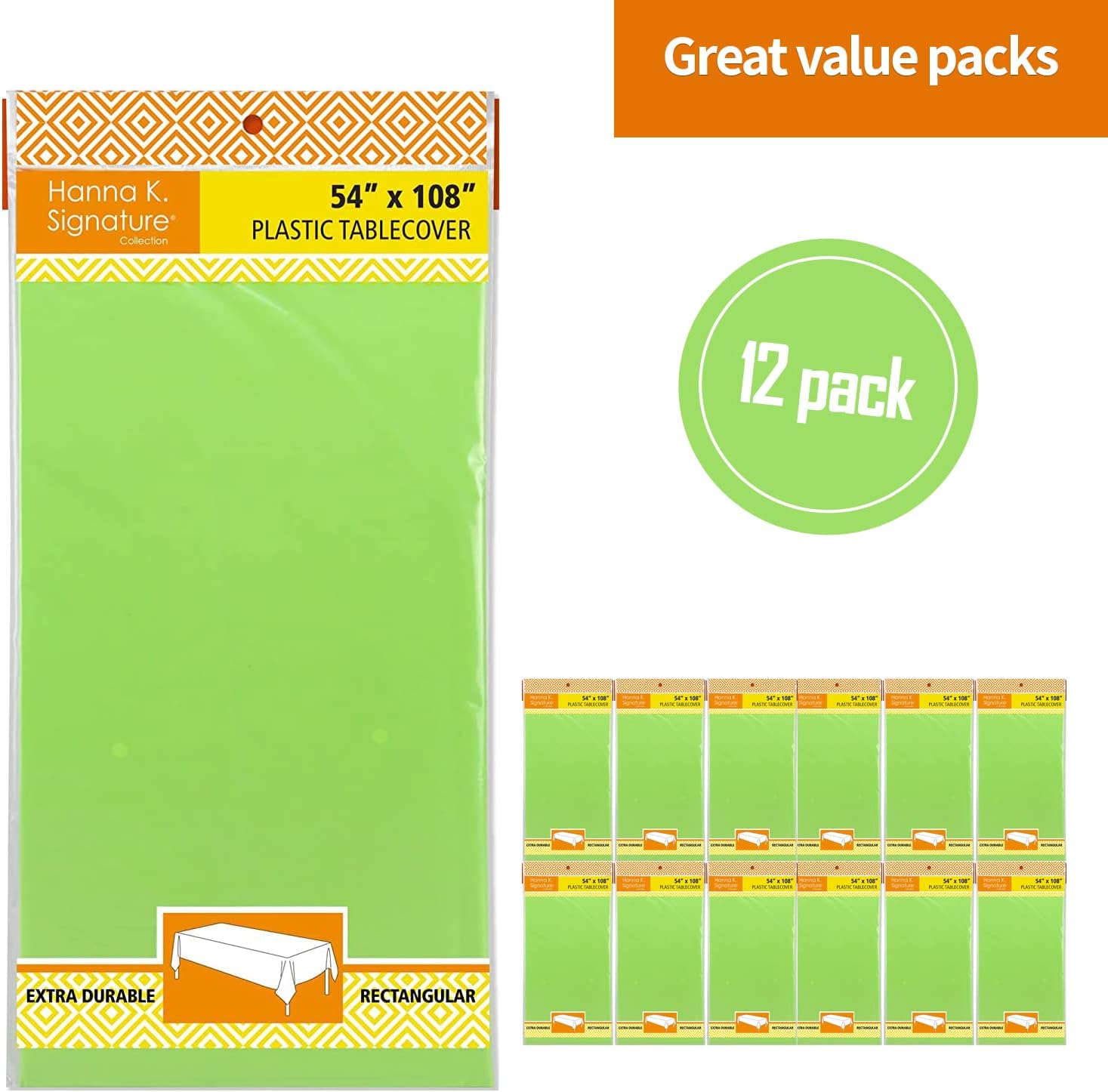 Lime Green Disposable Plastic Tablecloth for Rectangle Tables (12 Pack) Premium Decorative Table Covers, for Parties, Events and Weddings, Indoors & Outdoors, 54 x 108 inch, Rectangle, Lime Green