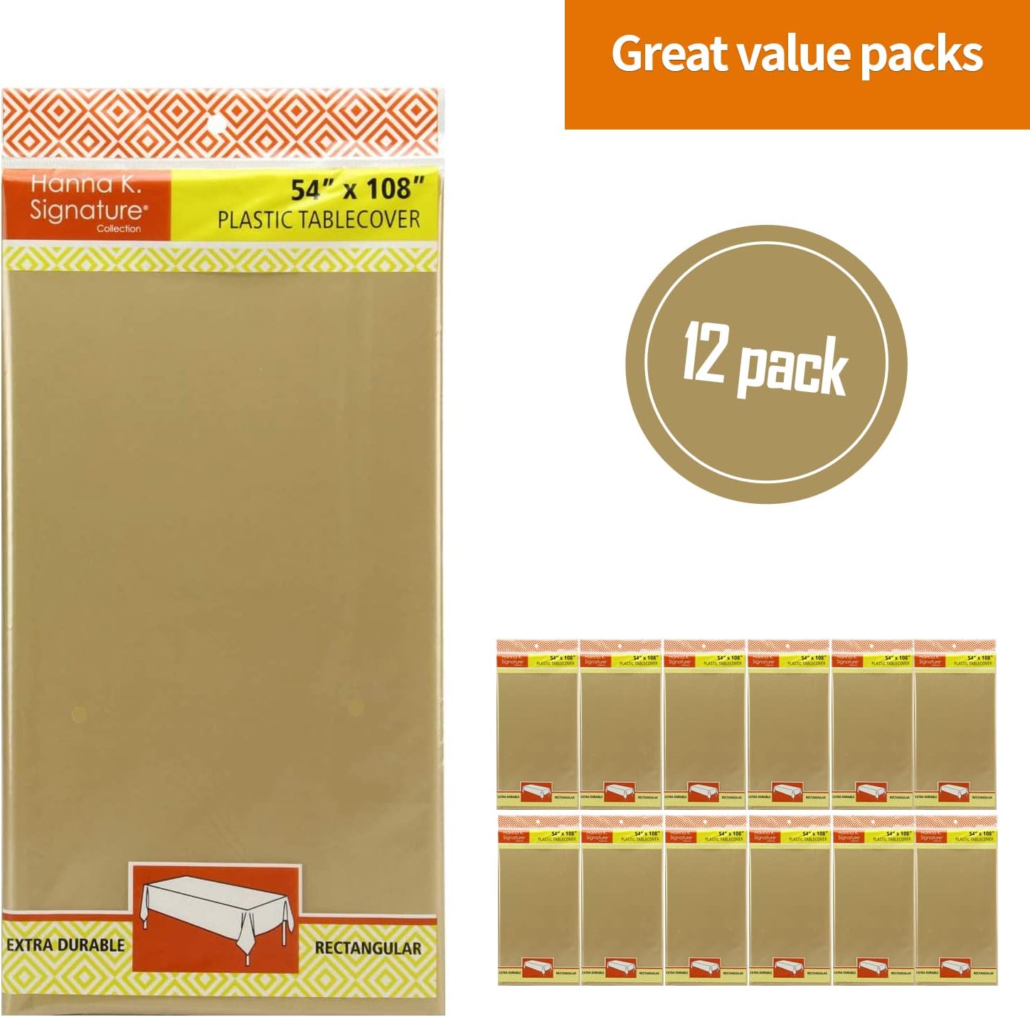 Gold Disposable Plastic Tablecloth for Rectangle Tables (12 Pack) Premium Decorative Table Cloth for Parties, Events & Weddings, Indoors & Outdoors, 54 x 108 inches, Plastic Table Cover