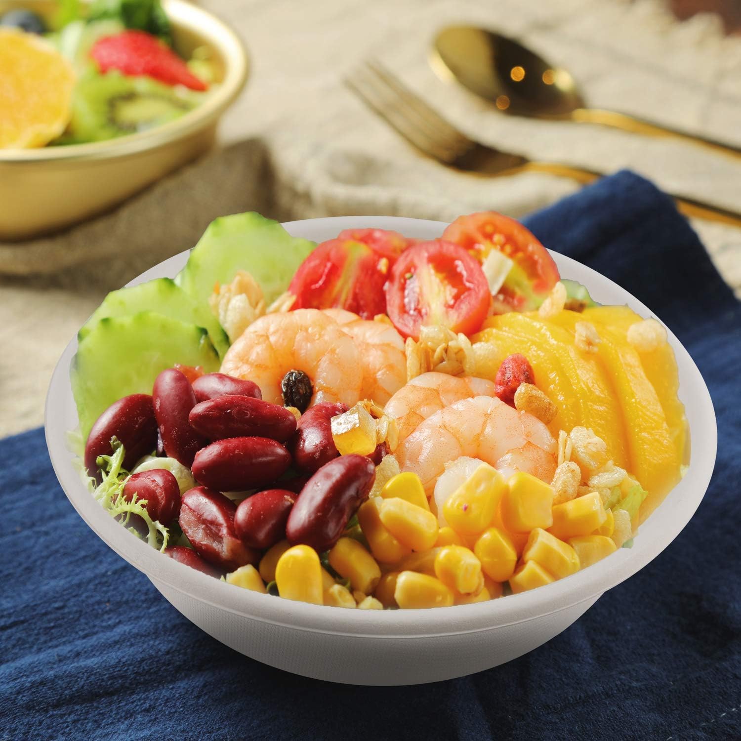 - 24OZ-120PCS Paper Bowls: Totally 120pack biodegradable bagasse bowls, perfect for soap-tasting, salad, cereal. Meanwhile, the strength construction makes paper bowls to be easy using. Oil and Liquid resistant character means whether hot or cold food, it can maintain the original shape and no leaking.