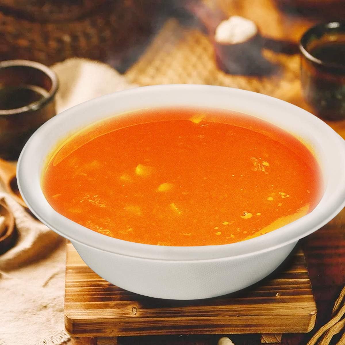 - Sturdy & Durable Disposable bowls: The Sugar Cane Fibers Bowls use durable plant fibre in their construction. These fibre are naturally stronger and more durable than traditional paper bowls. And our disposable soup bowls are free of harmful bleaches, chemicals, and petroleum products.Give you a green and beautiful life.