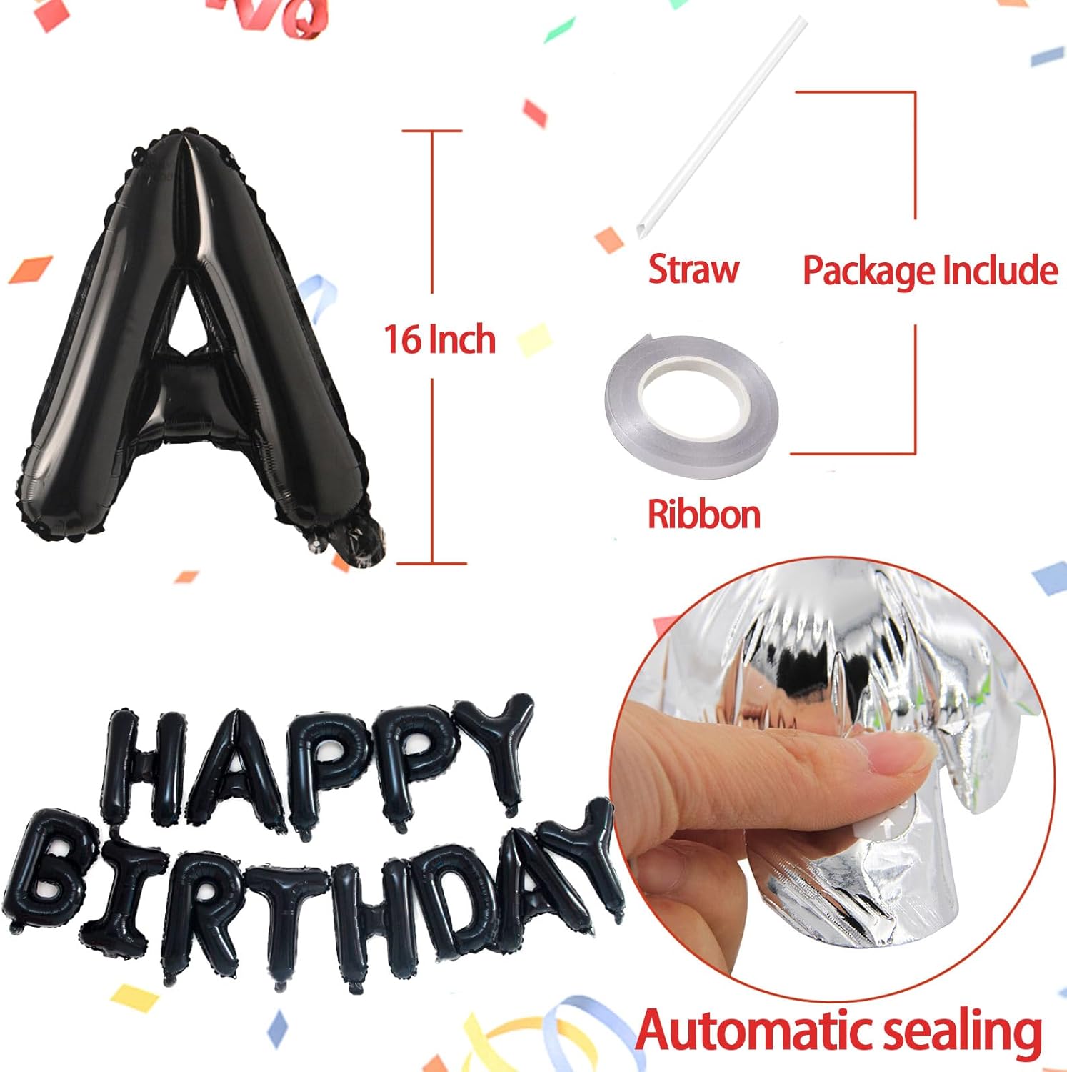 KALOR Black Happy Birthday Balloons Banner, 16 Inch Mylar Foil Letters Balloon Sign for Women, Men, Boys & Girls Kids Birthday Decorations Photo Backdrop