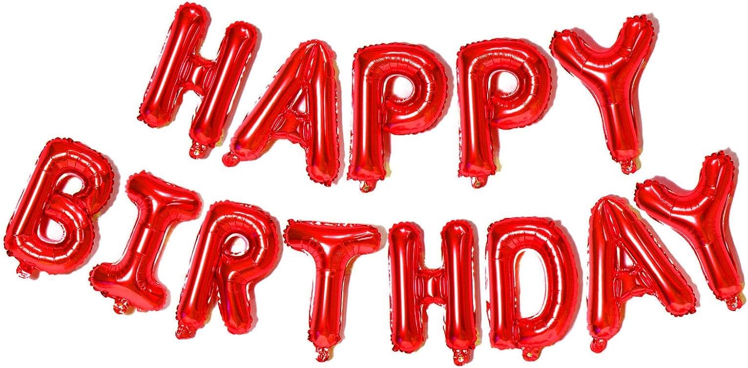 KALOR Red Happy Birthday Balloons Banner,16 Inch Mylar Foil Letters Sign Banner for Women & Girls Birthday Decorations for Photo Backdrop