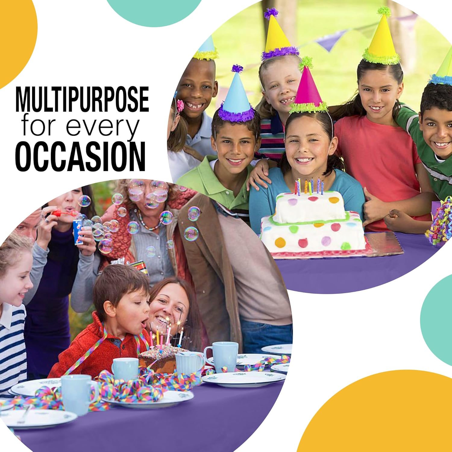 - SELECT A SIZE: Its A Plastic Tablecloth Roll Just In A Box With A Slide Cutter That Allows You To Choose What Size Rectangle Purple Table Cover You Want. With The Capacity Of Covering 36 Rectangle 8 Feet Tables.;PREMIUM QUALITY: Our Purple Plastic Disposable Table Cloths Rectangle Rolls Are Made Of Heavy Duty Plastic . With A High Opacity , Disposable Plastic Tablecloth Roll Are Water Proof And Will Hold Up Will To Heavy Use And Spills.; DISPOSABLE AND PORTABLE: With This Convenient Party In A Box, You'll Have No Problem Bringing Disposable Table Cloths To Any Location. With A Cutter Attached To The Box, You Can Easily Cut The Purple Tablecloth Roll To Any Size You Need.;USES: Let Your Imagination Run Wild. Disposable Purple Table Cover For 6 Ft Table , 8 Ft Table Or Even A 5 Ft Table And At The Same Time, A Red Carpet Runner For Party . Take This Wonder Of A Box On A Picnic Or Hike, Wedding Party , New Years Eve Party Or Any Other Occasion. It's That Handy Tablecloth You Always Want To Keep Nearby.