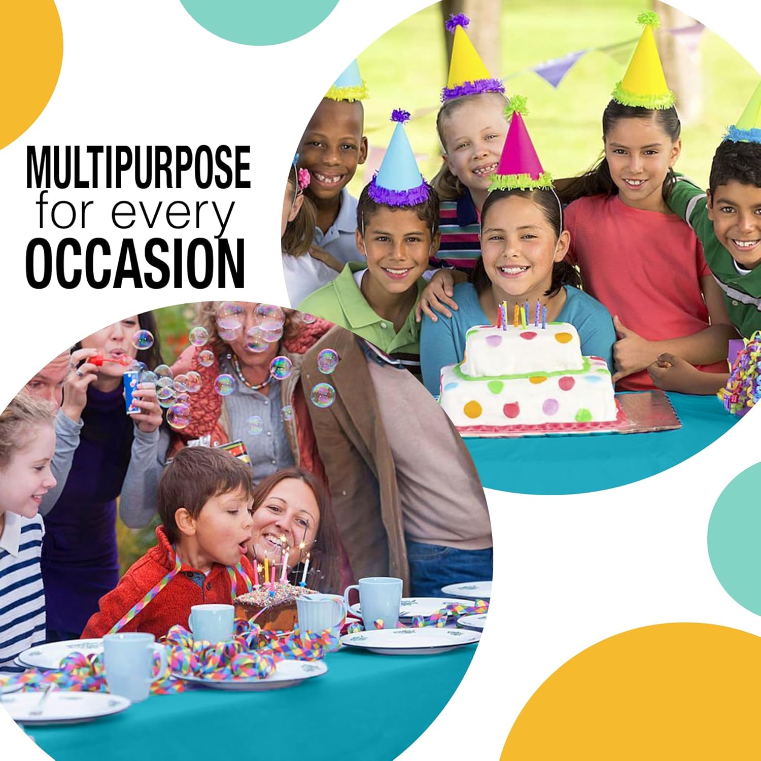 - SELECT A SIZE: Its A Plastic Tablecloth Roll Just In A Box With A Slide Cutter That Allows You To Choose What Size Rectangle Turquoise Table Cover You Want. With The Capacity Of Covering 12 Rectangle 8 Feet Tables.;PREMIUM QUALITY: Our Turquoise Plastic Disposable Table Cloths Rectangle Rolls Are Made Of Heavy Duty Plastic . With A High Opacity , Disposable Plastic Tablecloth Roll Are Water Proof And Will Hold Up Will To Heavy Use And Spills.; DISPOSABLE AND PORTABLE: With This Convenient Party In A Box, You'll Have No Problem Bringing Disposable Table Cloths To Any Location. With A Cutter Attached To The Box, You Can Easily Cut The Turquoise Tablecloth Roll To Any Size You Need.;USES: Let Your Imagination Run Wild. Disposable Turquoise Table Cover For 6 Ft Table , 8 Ft Table Or Even A 5 Ft Table And At The Same Time, A Red Carpet Runner For Party . Take This Wonder Of A Box On A Picnic Or Hike, Wedding Party , New Years Eve Party Or Any Other Occasion. It's That Handy Tablecloth You Always Want To Keep Nearby.