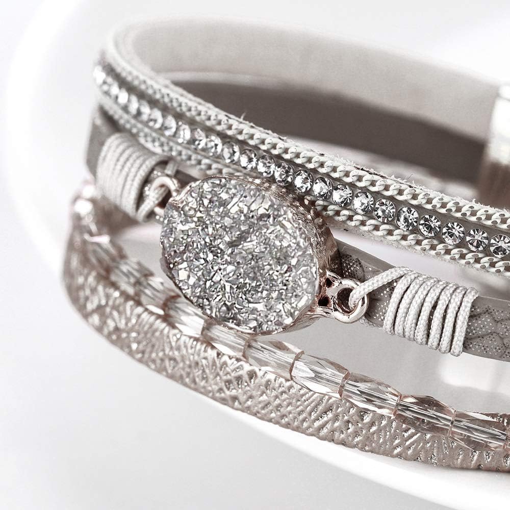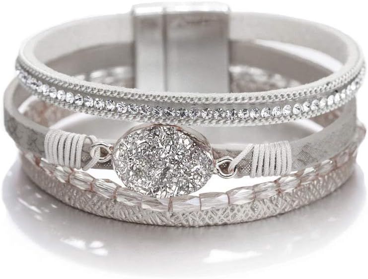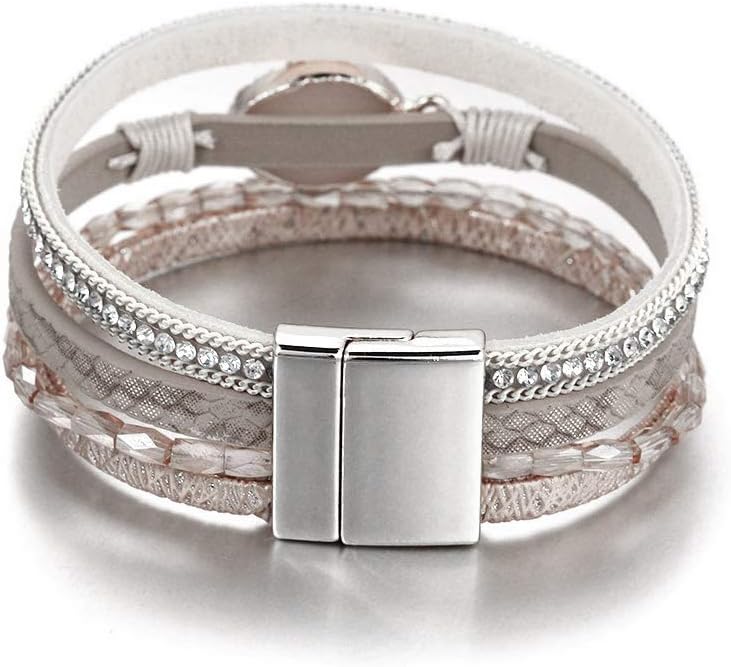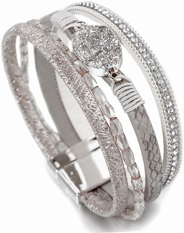 - 【UNIQUE DESIGN】 Our gorgeous and attractive leather bracelet features multiple strands of leather cords combination in different texture, adorned with sparkle beads and small rhinestones. You can wear our wrap bracelet on different occasions, no matter shopping, working, party, dance or dating, this bracelet will attract a lot of attention, you'll get more compliments.
