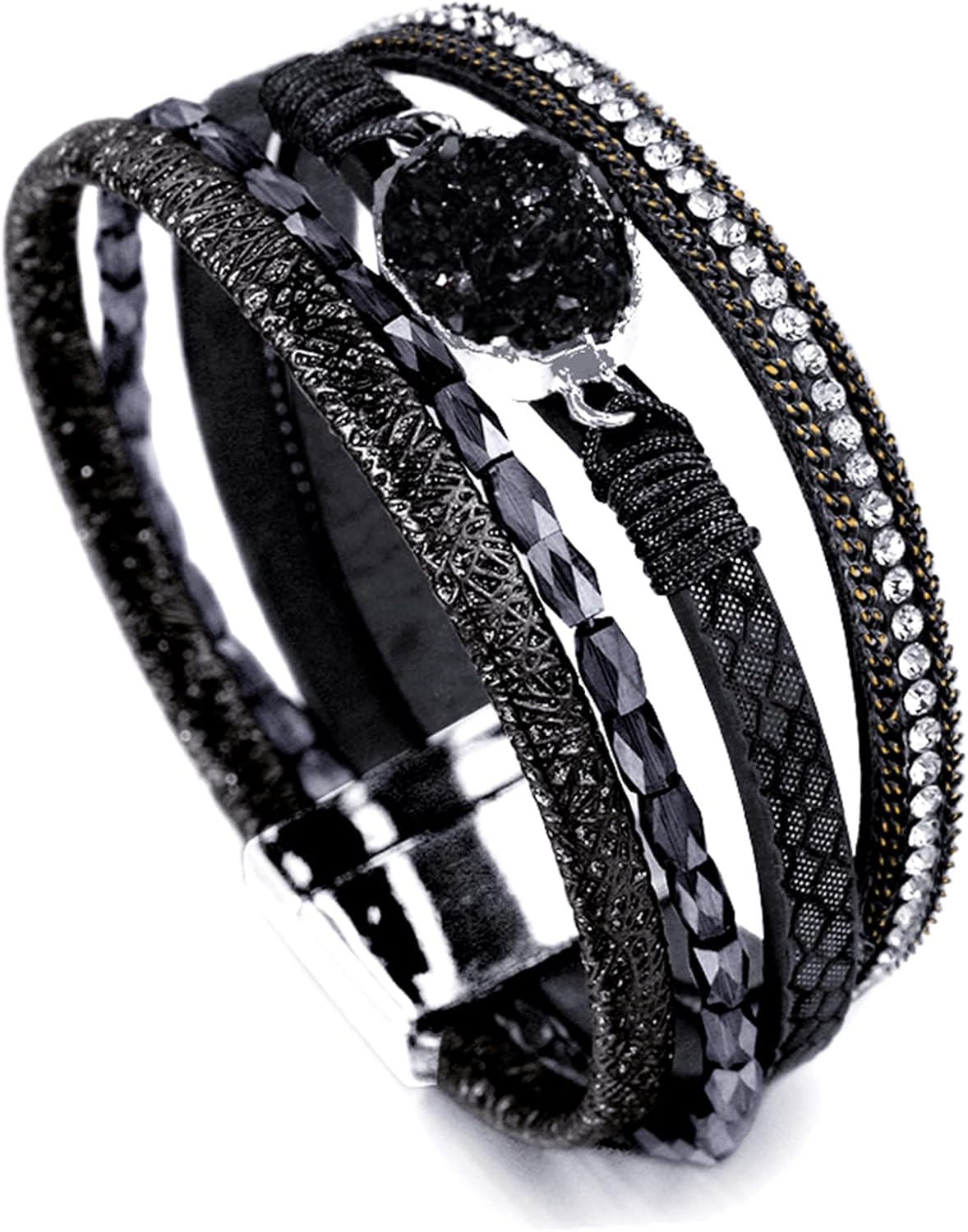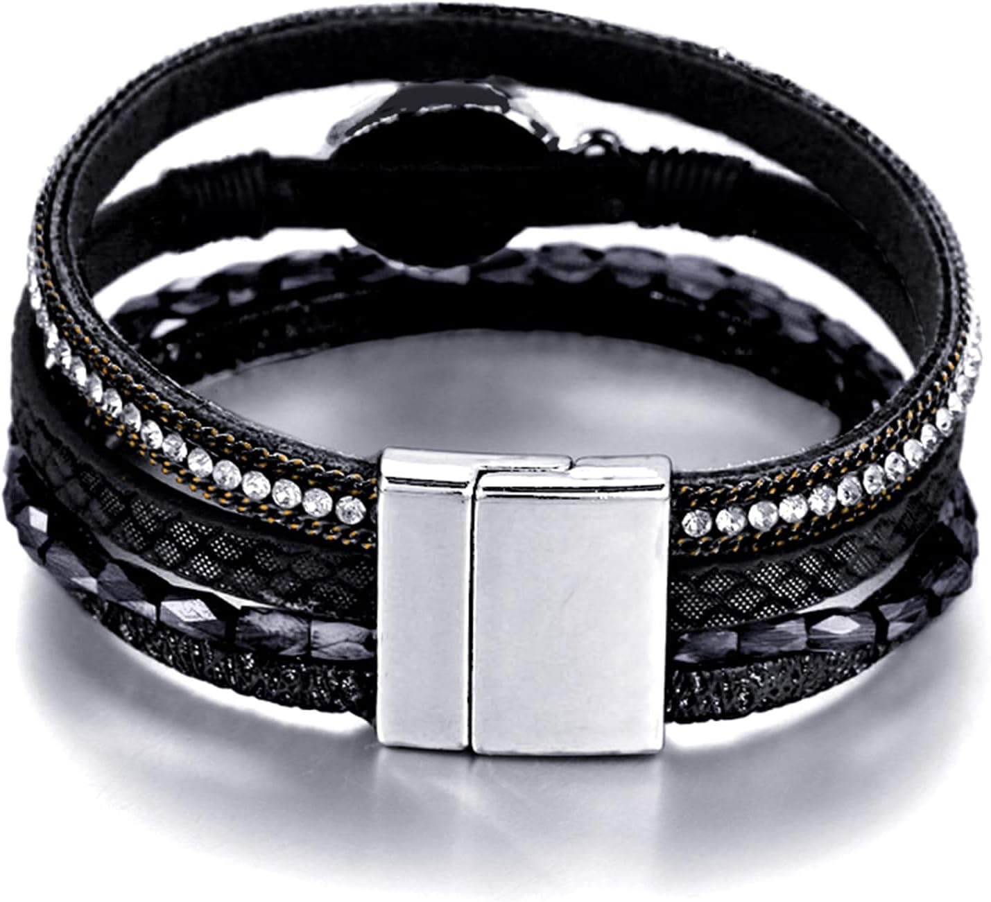 - 【UNIQUE DESIGN】 Our gorgeous and attractive leather bracelet features multiple strands of leather cords combination in different texture, adorned with sparkle beads and small rhinestones. You can wear our wrap bracelet on different occasions, no matter shopping, working, party, dance or dating, this bracelet will attract a lot of attention, you'll get more compliments.