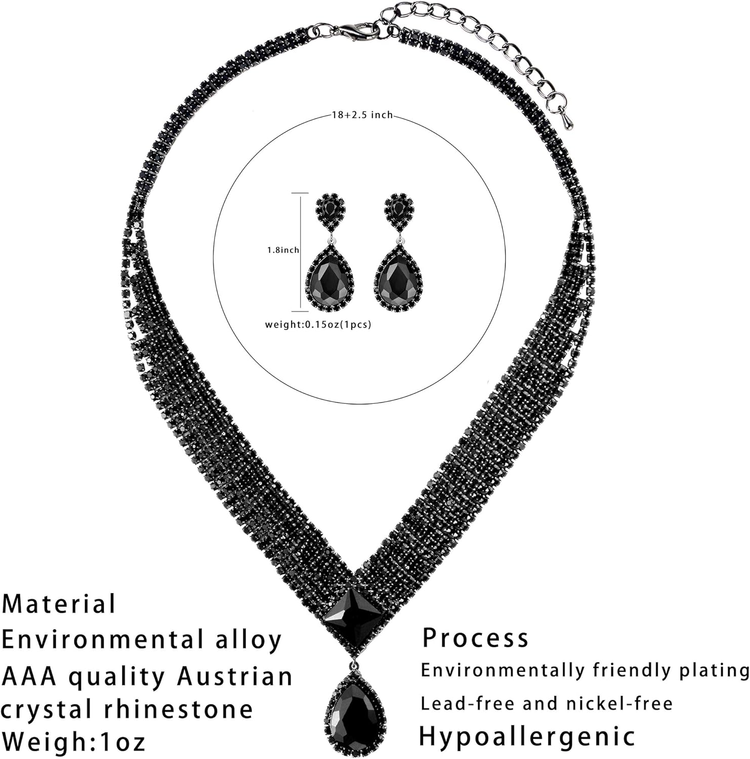 - ❤ Specification ❤: Size: Necklace: 18 inches + 2.5 inches extension. Dangle Earring 1Set. Lobster Clasp: Easy to open and close, not easy to fall off (More security). Color: silver eco-friendly plating, Measure up of Prop 65 standard, Will not tarnish and hurt your neck. Material: AAA Rhinestone & Crystal + alloy