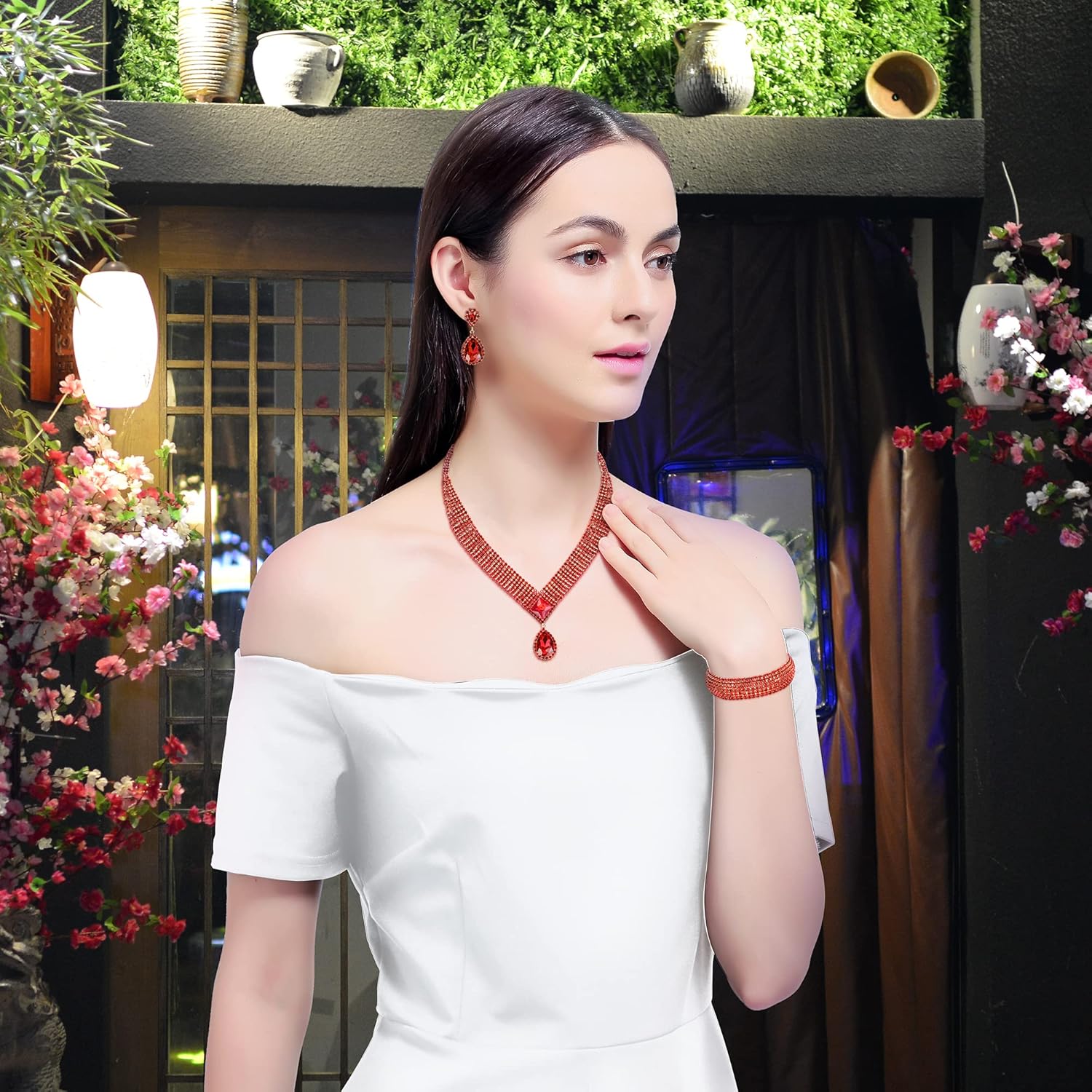 - ❤ Unique Design ❤: Teardrop Jewelry Sets, Rhinestone Crystal Necklace Link Bracelet Teardrop Dangle Earrings.With a fabulous design and solid construction.the classic and elegant always keep pace with fashion,which will make a timeless accessory to any jewelry collection. can be worn with classy casual with formal attire or Wedding dress ,never goes out of style.