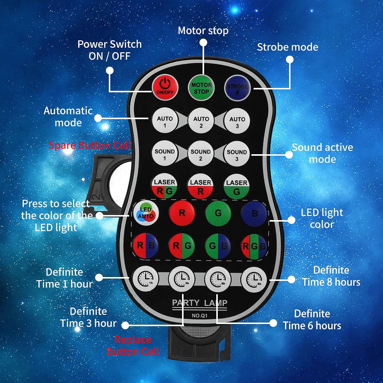 - 【Timing Function & Mini Size】 There are several time setting options (1h, 3h, 6h, 8h) that you can choose to run the light. The lightweight and compact RGB Projector is convenient for you to carry it everywhere. We provide lifetime warranty, If you have any questions, please feel free to