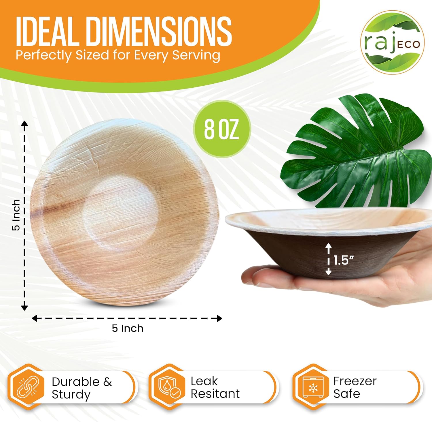 Raj Disposable Palm Leaf Bulk Bowls (200 Count, 5" Bowls) Strong Bowl Like Bamboo Party Bowl - Decorative Compostable Tableware for Lunch, Dinner, Birthday, Outdoor, BBQ, Picnic, Parties