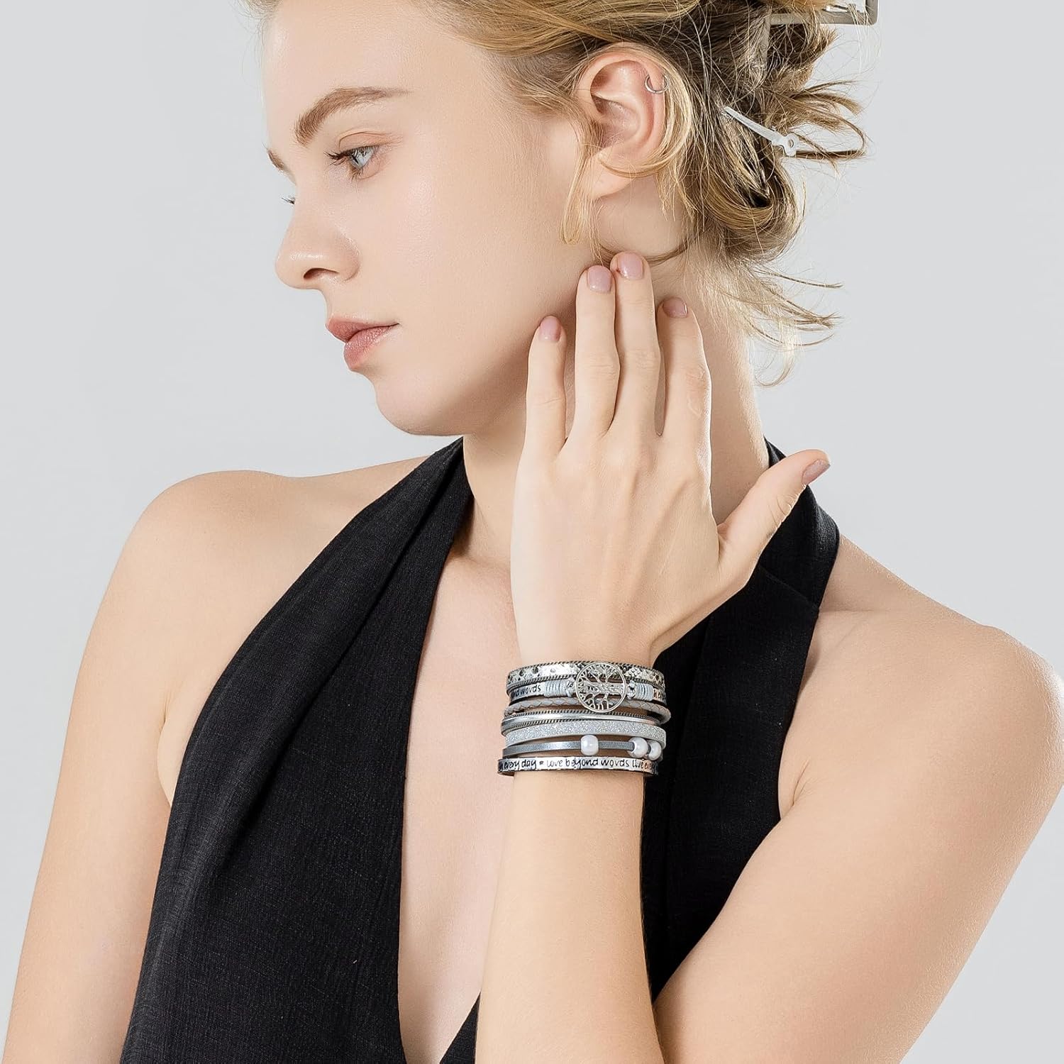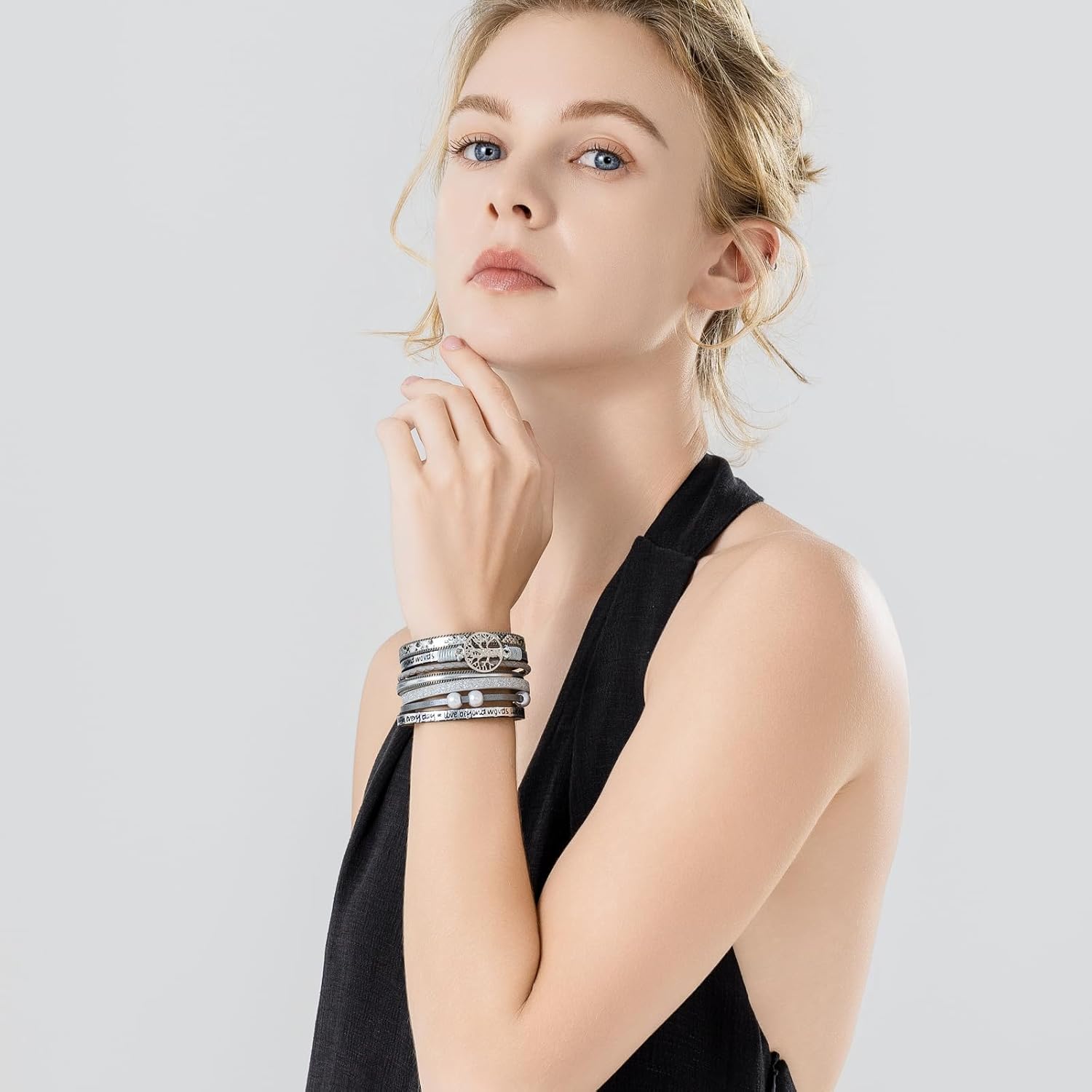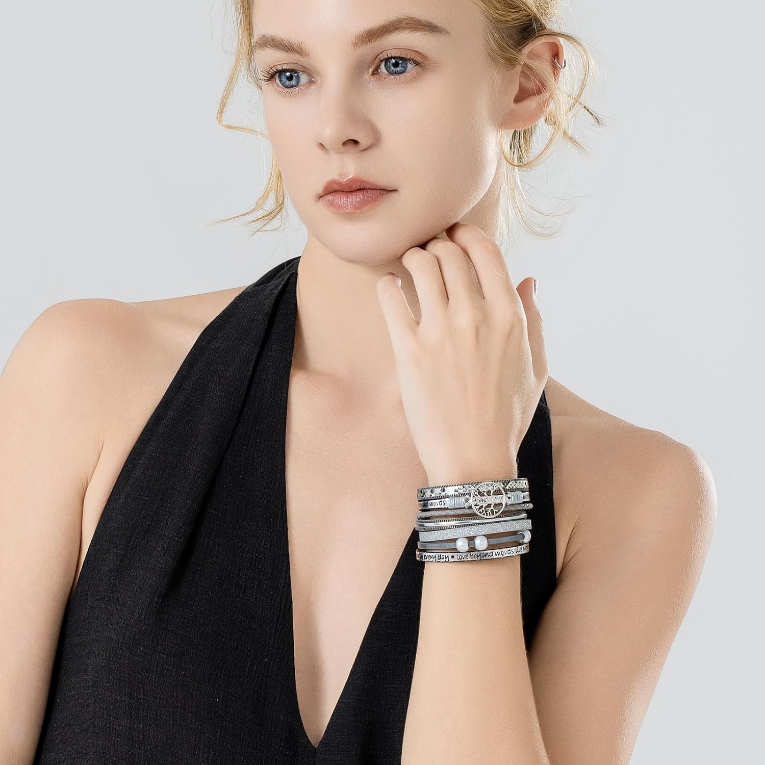 - Quality Control: The cool multi-strand bracelet is made of top grade leather, comfortable to wear, no fading, no pungent smell, stackable with other bracelets.