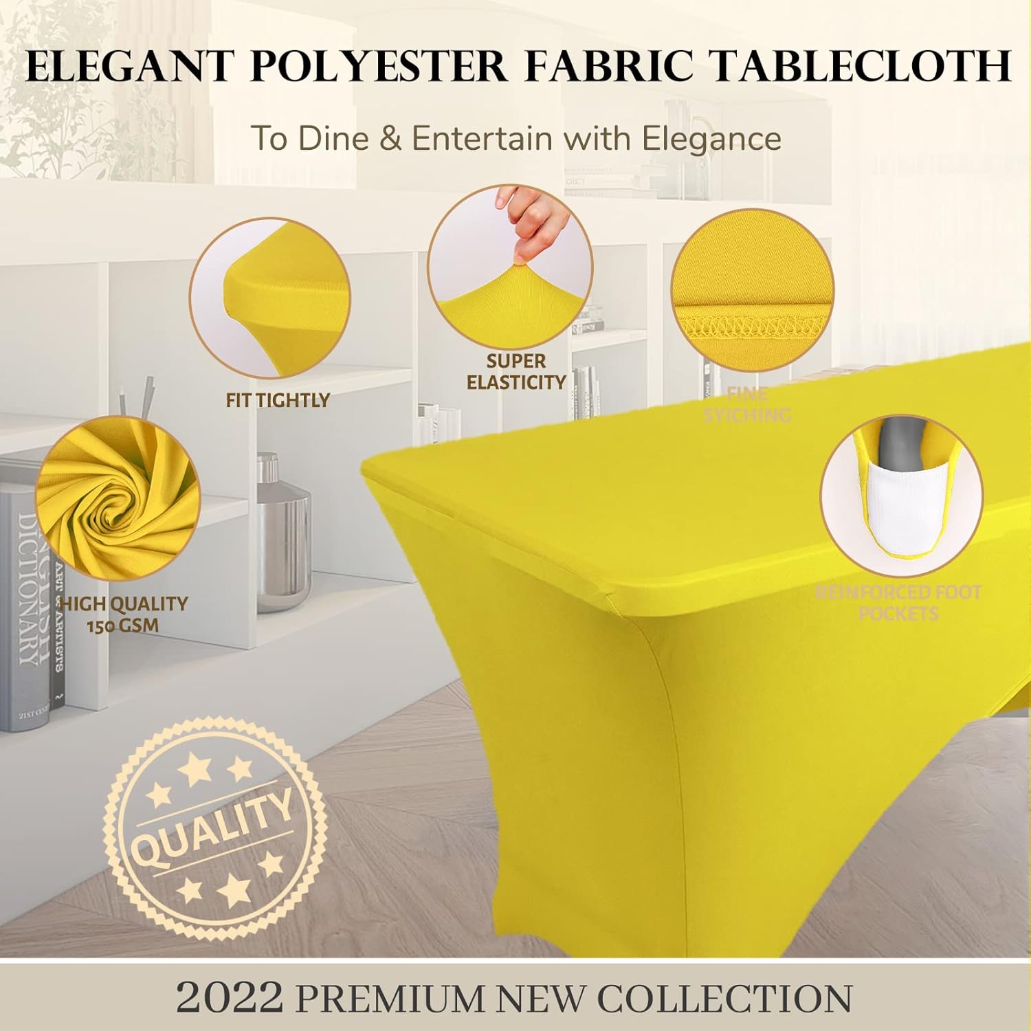 Spandex Table Cover 8 ft. Fitted Polyester Tablecloth Stretch Table Cover Table Topper Open Back - Yellow