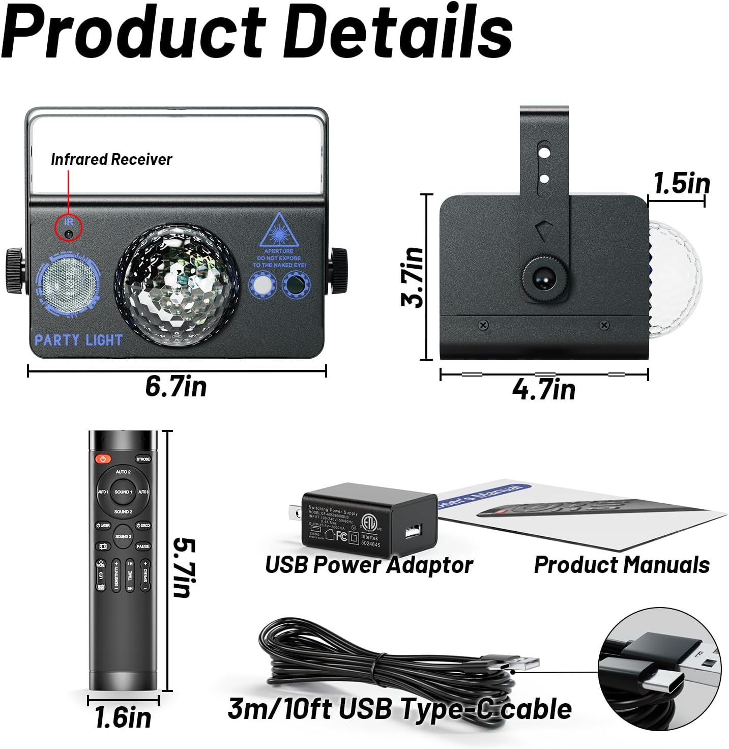 - Convenient control: Using the remote control, you can control the opening and closing of the disco ball and stage lights, also can work with two lights. When it's working, the pattern is clear and beautiful, adding more fun to your party.