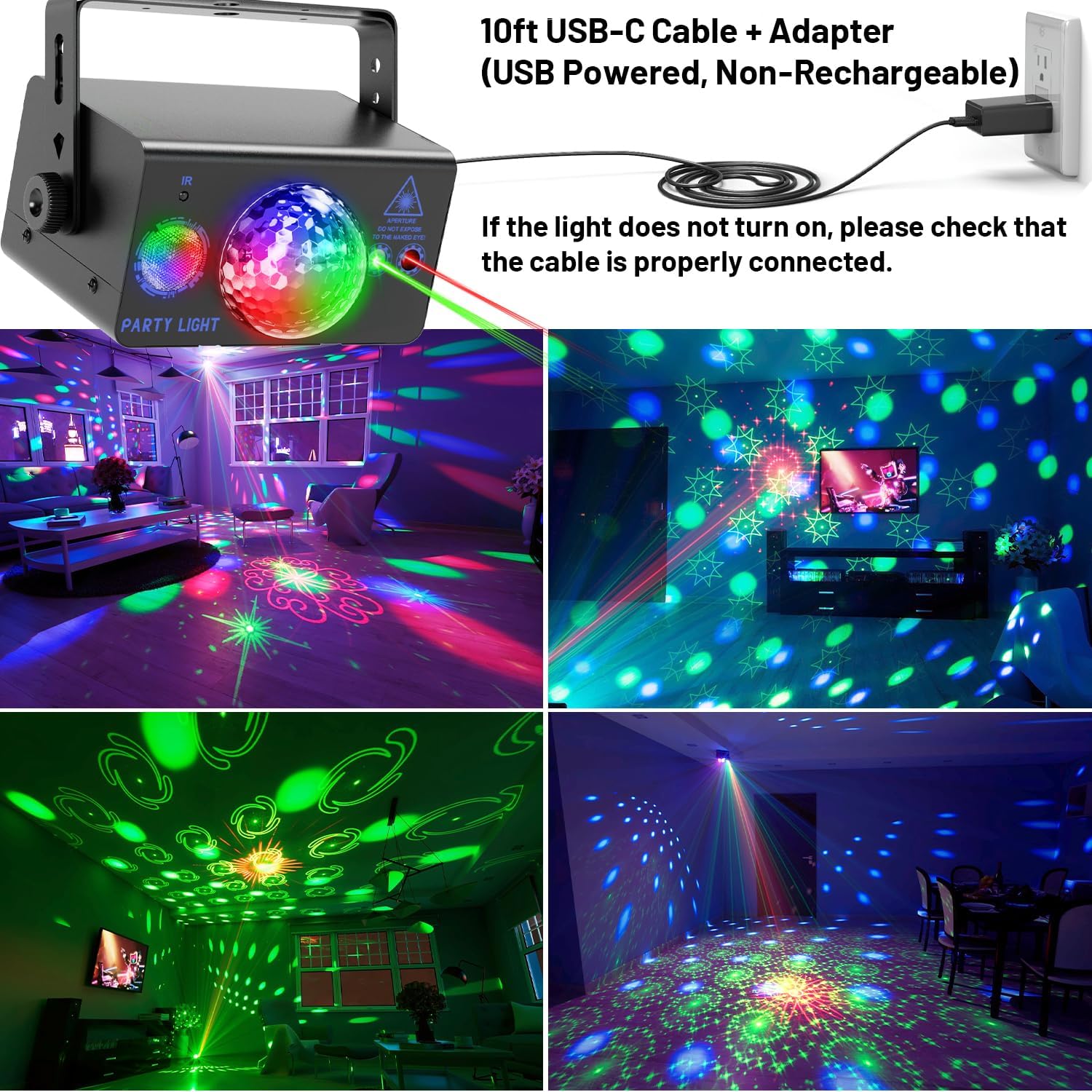 - Disco ball version for RGB color. 3 beam combinations (red, green, red &green) with colorful ball light, such multi-effect combination to create a more wonderful atmosphere.