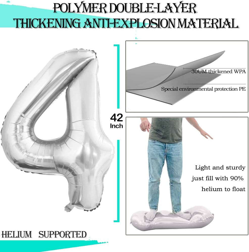 - Package Includes:42 inch Silver number 40 foil balloons,1 inflatable straw,10 meters ribbon
