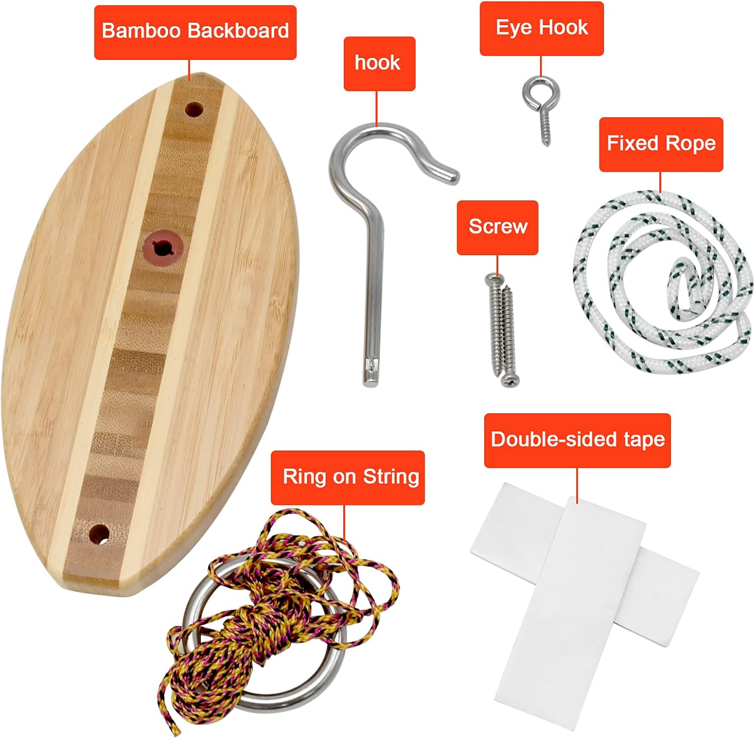 - ►【Quality material】The hook toss shortboard is made of quality bamboo, polished and painted nicely, no odd smell, smooth on the surface, no pointed parts to hurt you, no stains or scratches, reliable to use for a long time; The ring and hook are both made of stainless steel, won't rust easily, sturdy and firm; And the rope is made of nice nylon, hard to tear or wear, which will give you long-term service