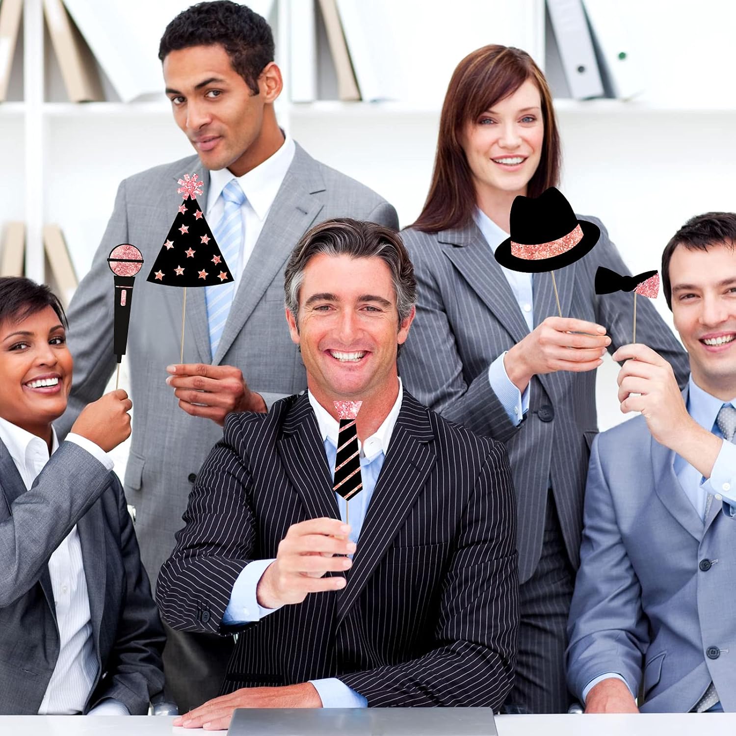 Zonon 24 Pieces Funny Photo Booth Props:Halloween,Christmas,Family Reunion, Class Reunion, Birthday, Weddings, Prom Disco Mardi Gras Party Supplies - Mix of Hats, Lipstick, Tie(Rose Golden)