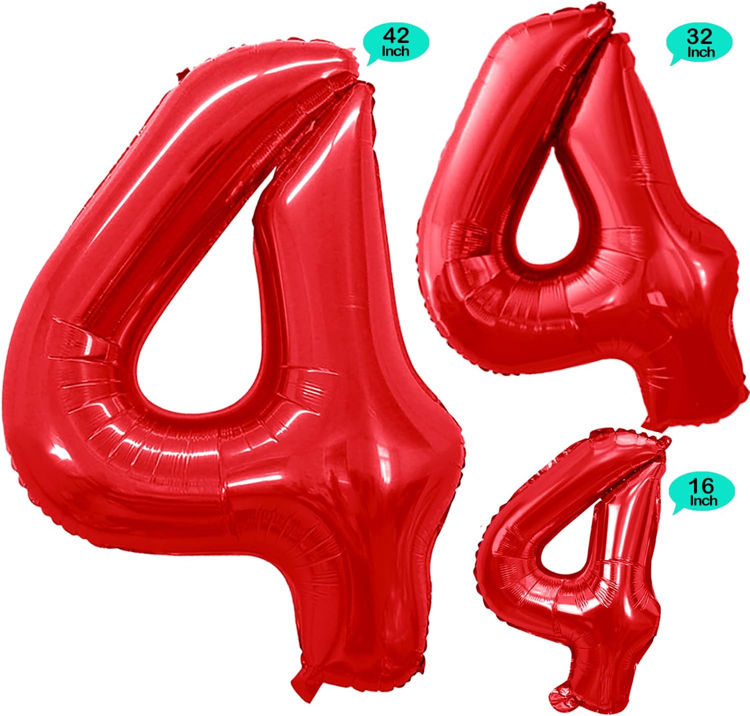 - Package Includes:Number 4 Balloons*3,42 inch,32 inch,16inch each,Straw*1