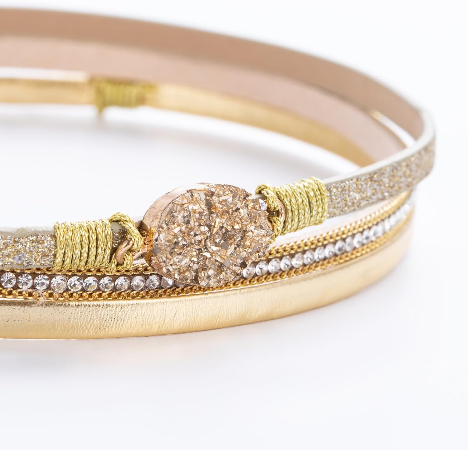 FANCY SHINY Leather Wrap Bracelet Boho Cuff Bangle Bracelets Crystal Bead Bracelet with Magnetic Clasp Jewelry Gifts for Women