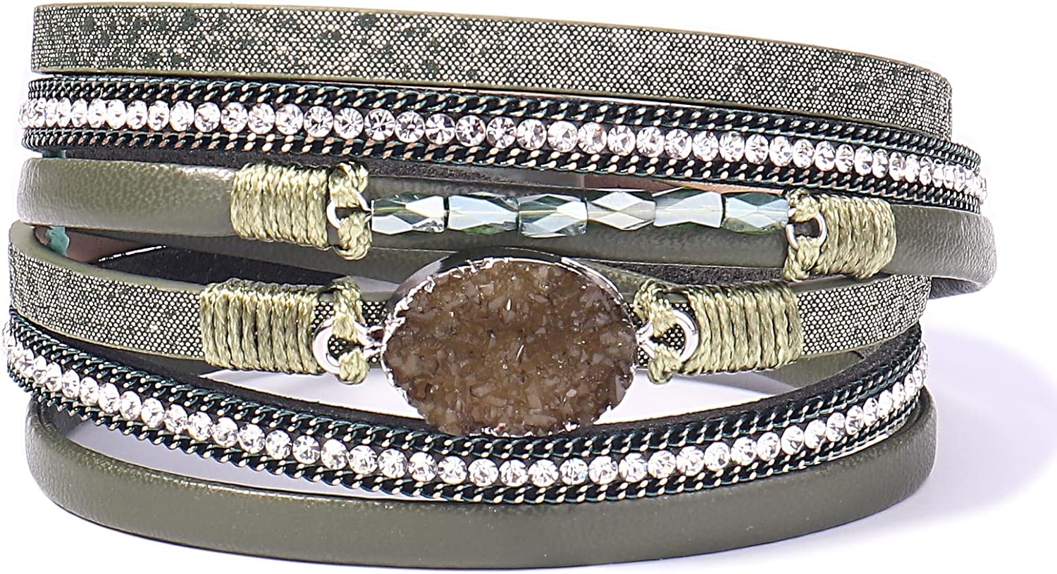 FANCY SHINY Leather Wrap Bracelet Boho Cuff Bangle Bracelets Crystal Bead Bracelet with Magnetic Clasp Jewelry Gifts for Women