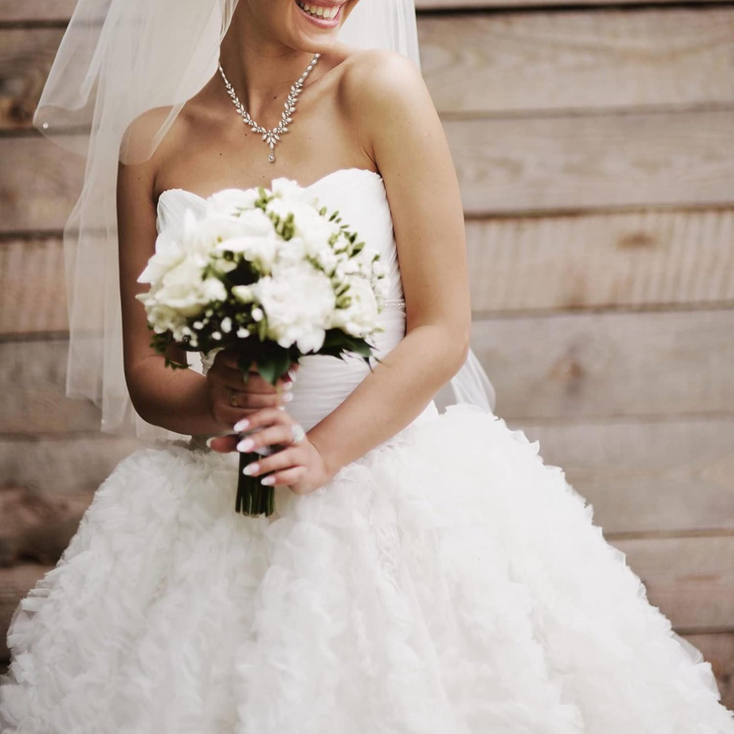 - Material: The bridal jewelry set is made of white gold plated brass and AAA+ clear cubic zirconia. Lead and nickel free, the hypoallergenic cubic zirconia wedding set is light weight and comfortable to wear, having exquisite sparkle and shine, they would be a perfect accessory to add glamor and elegance to your bridal style