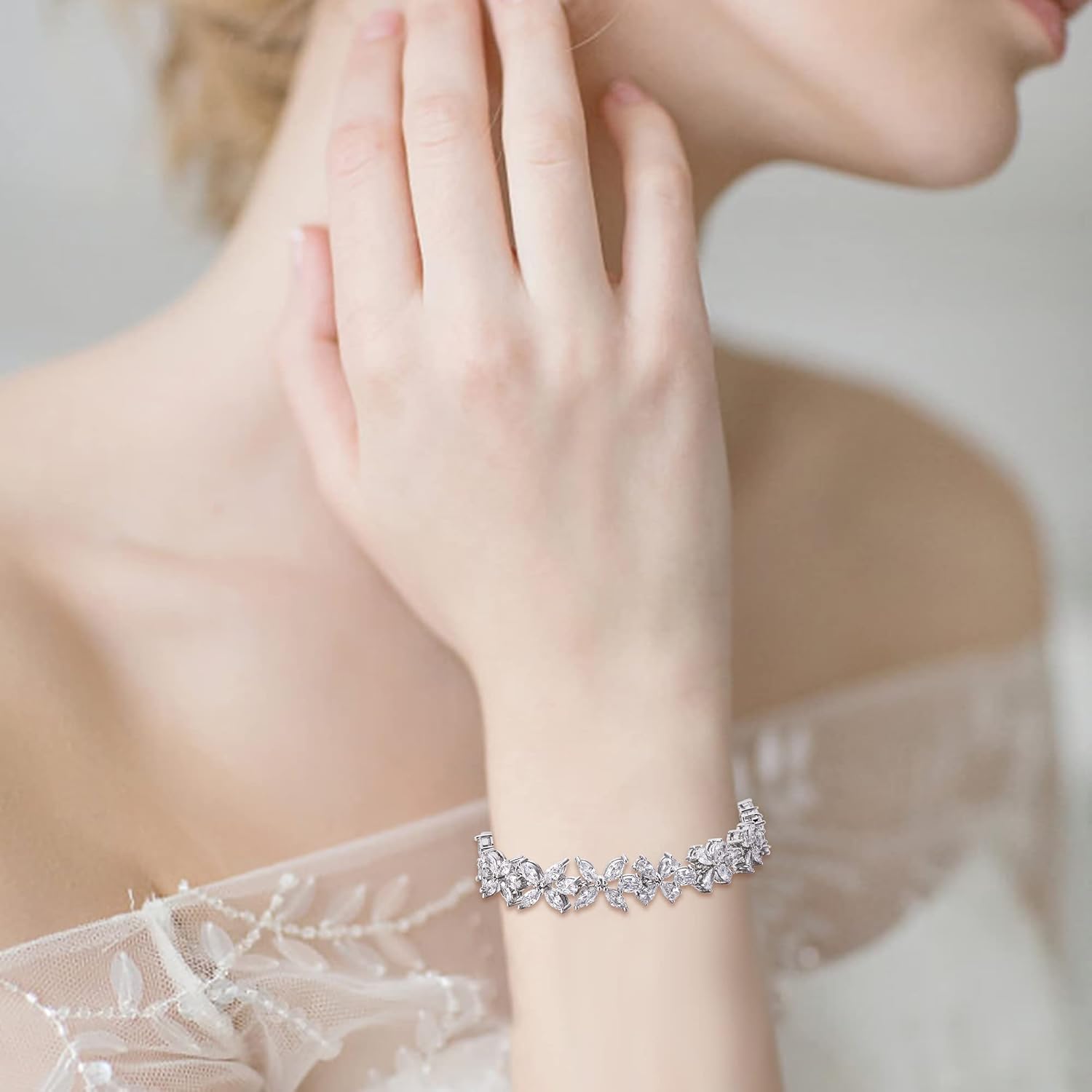 - Material: The elegant floral jewelry set is made of sparkling cubic zirconia and brass.