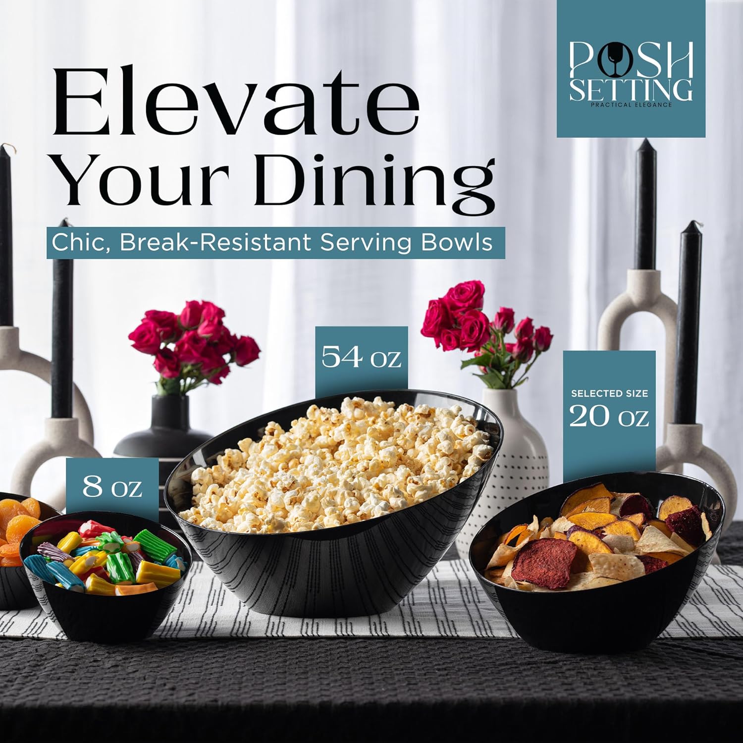 Posh Setting - Black Plastic Serving Bowls for Party - Angled, Disposable, Chip & Candy Bowls - 20 OZ, 5 Pack