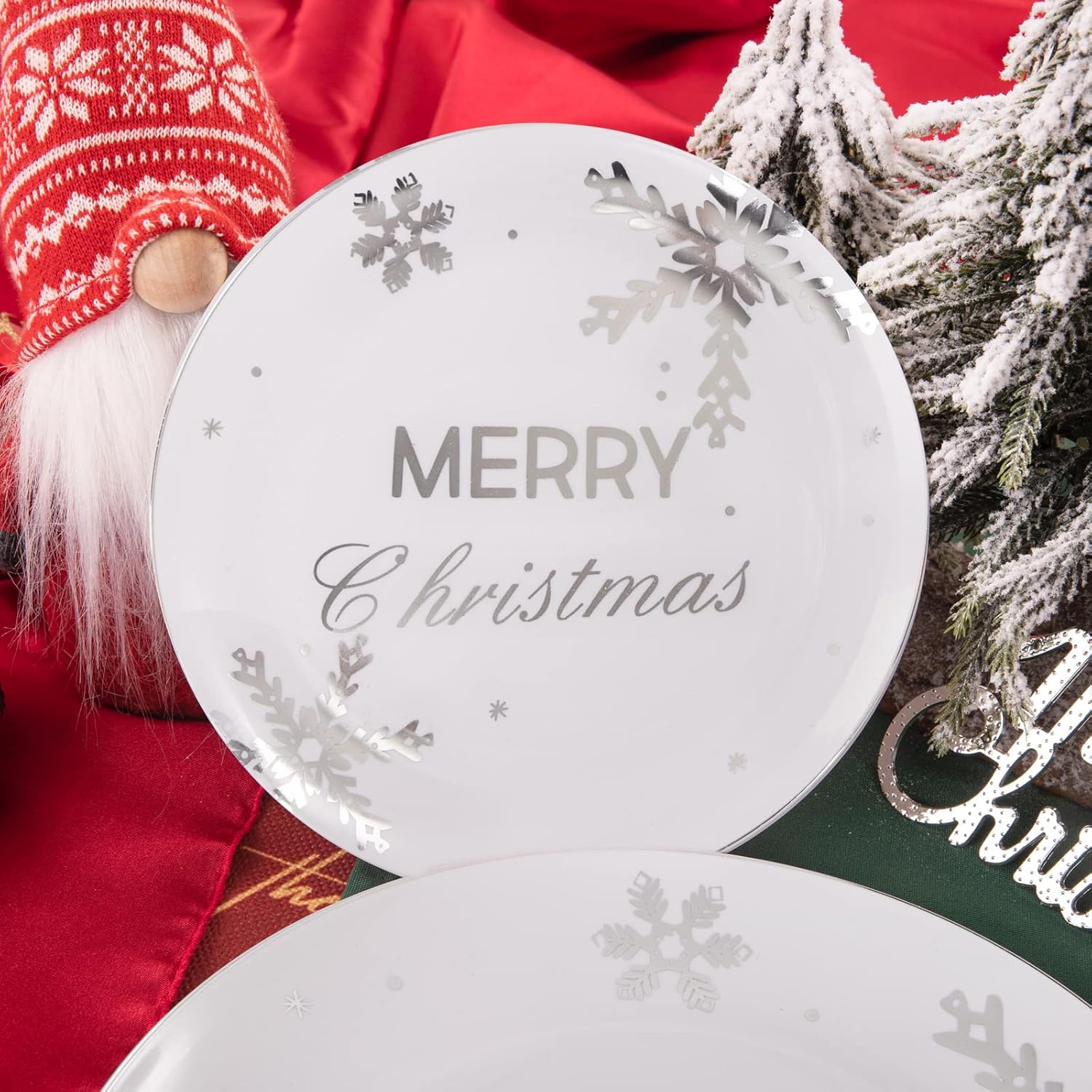 - 【UNIQUE CHRISTMAS TREE DESIGNED】25 guests of white plastic plates with silver rim and silver plastic cutlery, they will add more spice to your Christmas theme party. These Christmas snowflake plastic plates can meet all the needs of Christmas theme party at once.