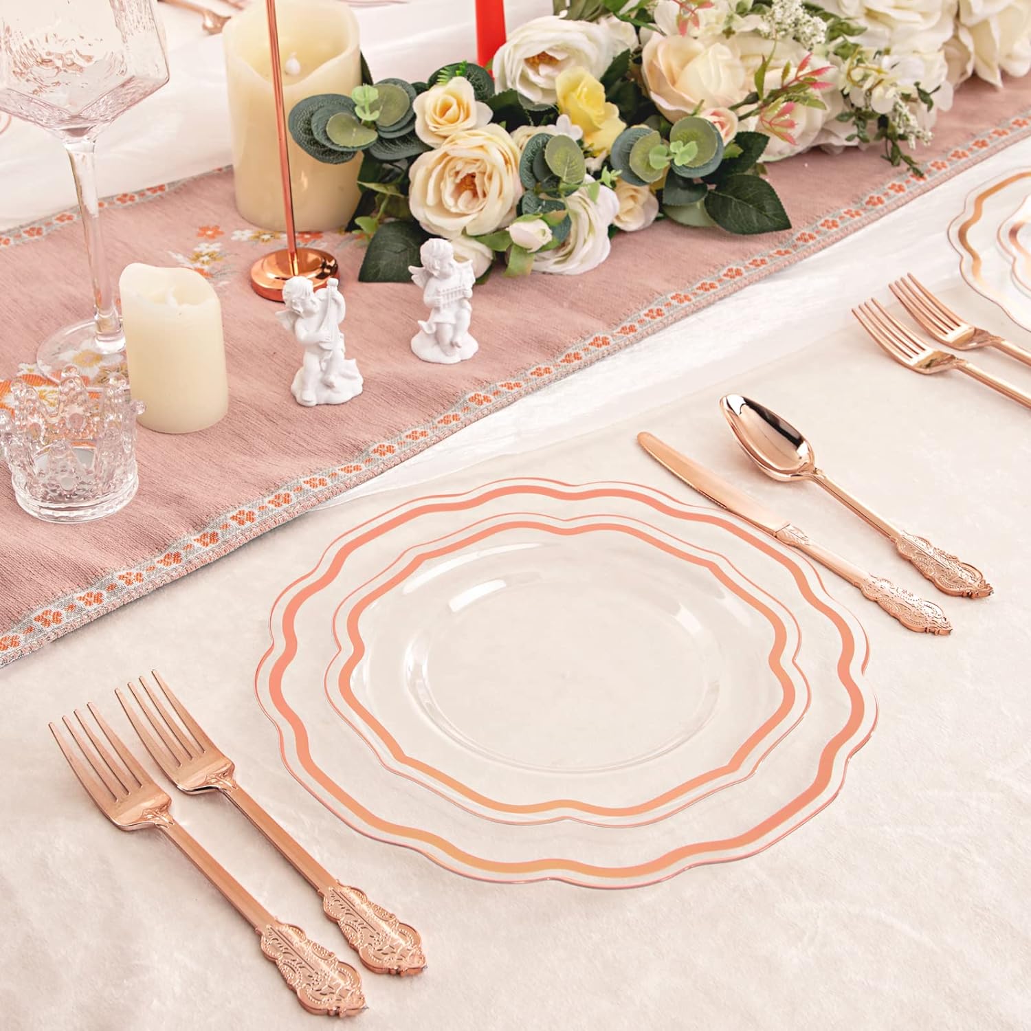 - 【BEST SERVICE】If you encounter problems during the purchase of these clear and rose gold plastic plates or after purchase, please contact us. We will provide you with appropriate solutions in time to avoid unnecessary losses.