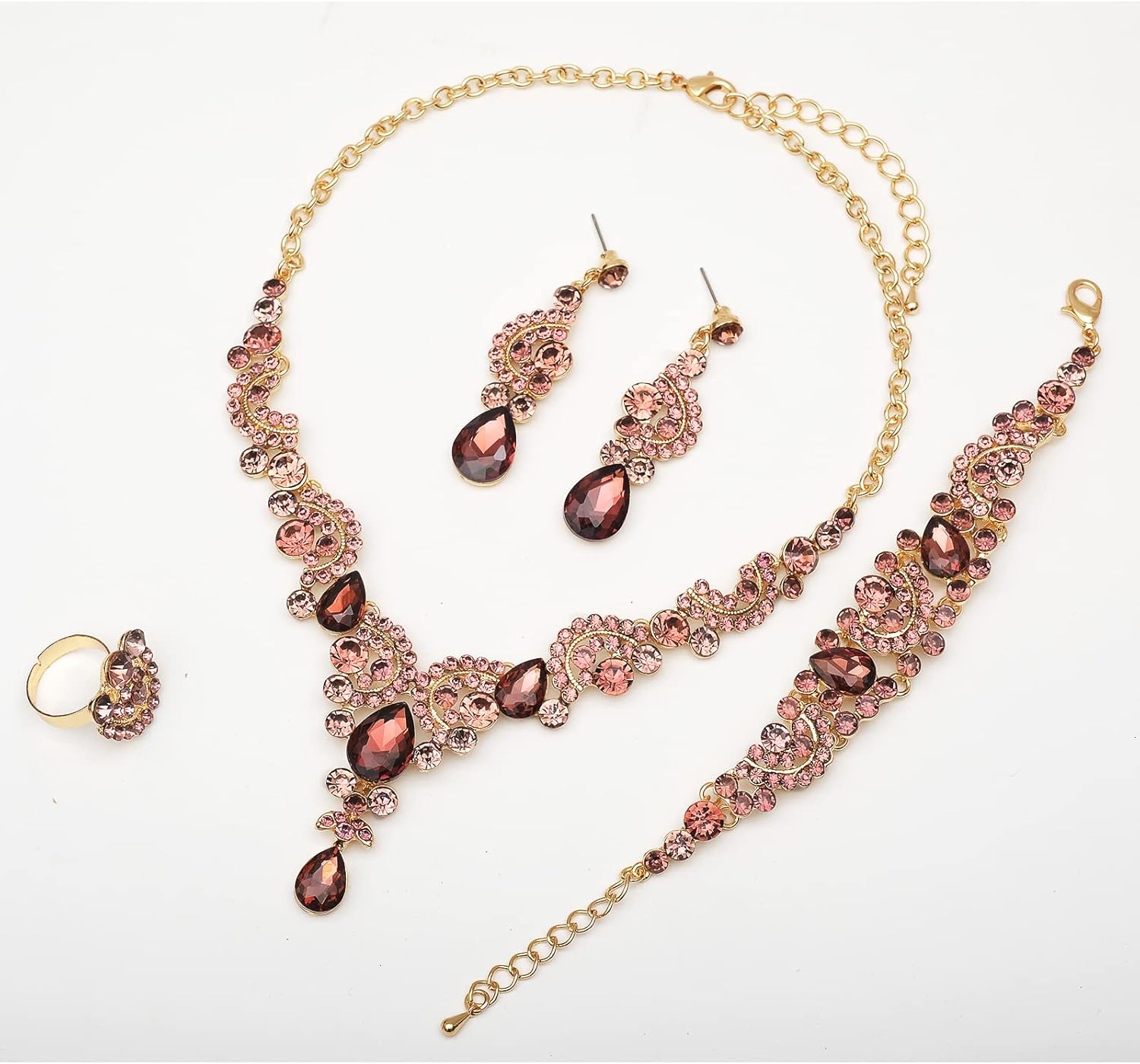 CSY Elegant Crystal Necklace Earrings Bracelet Ring Bridal Wedding Party Costume Jewelry Sets for Brides Women