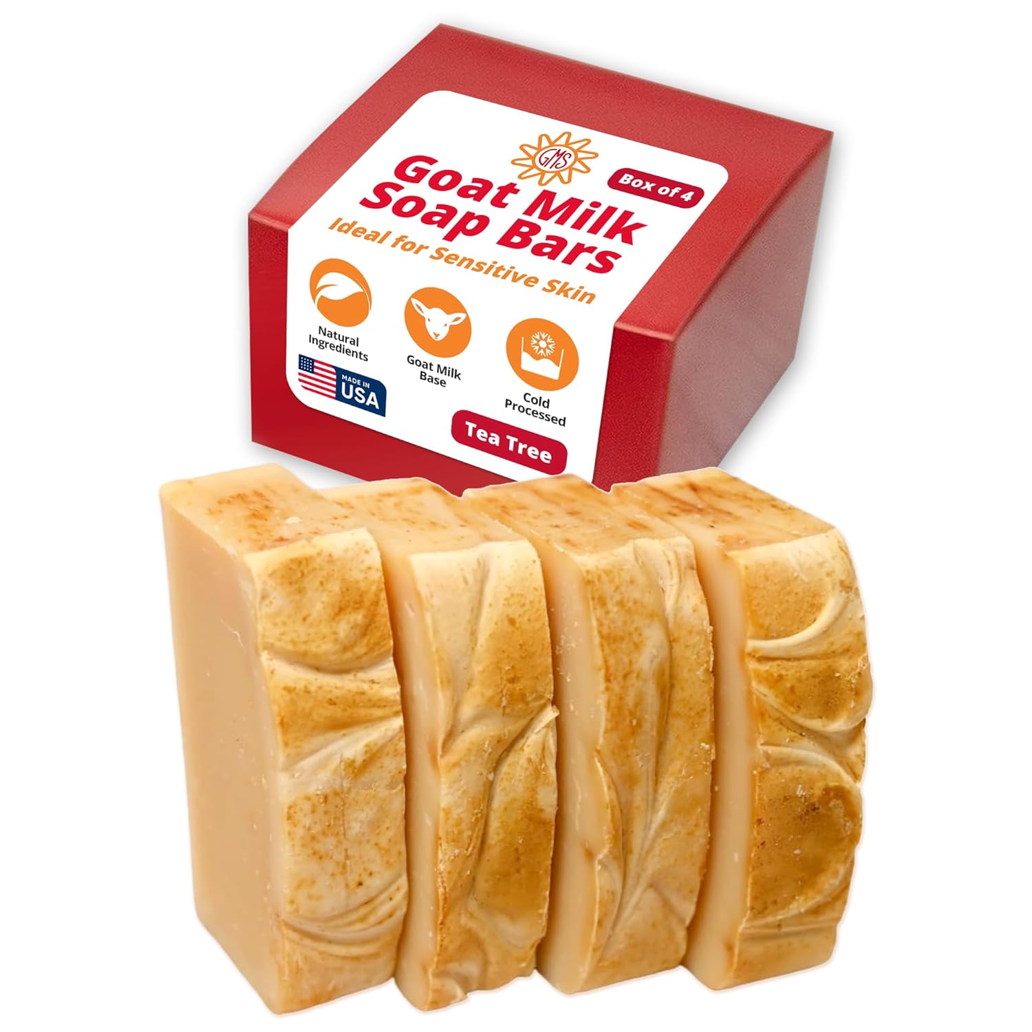 Goat Milk Stuff Goat Milk Soap - TEA TREE | Natural Soap Bars For Women and Men, Face Soap for acne - Handmade (Box of 4)