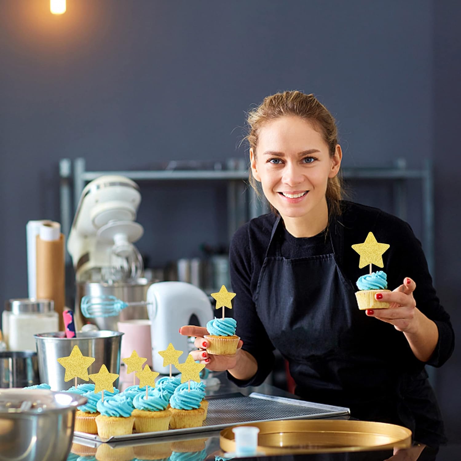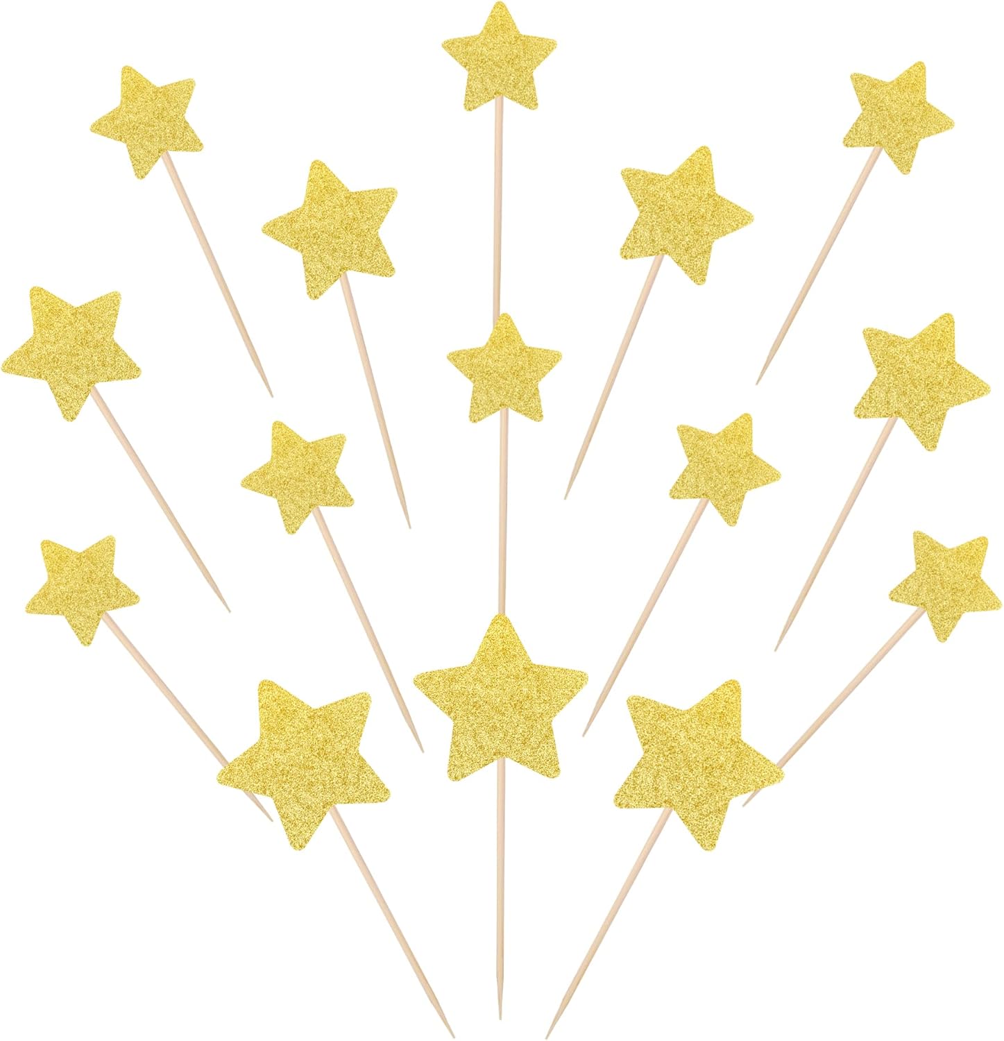 30 PCS Star Cupcake Toppers Glitter Assembled Twinkle Star Cupcake Picks Wedding Engagement Bridal Shower Birthday Party Cake Decorations Supplies Mixed Size Gold