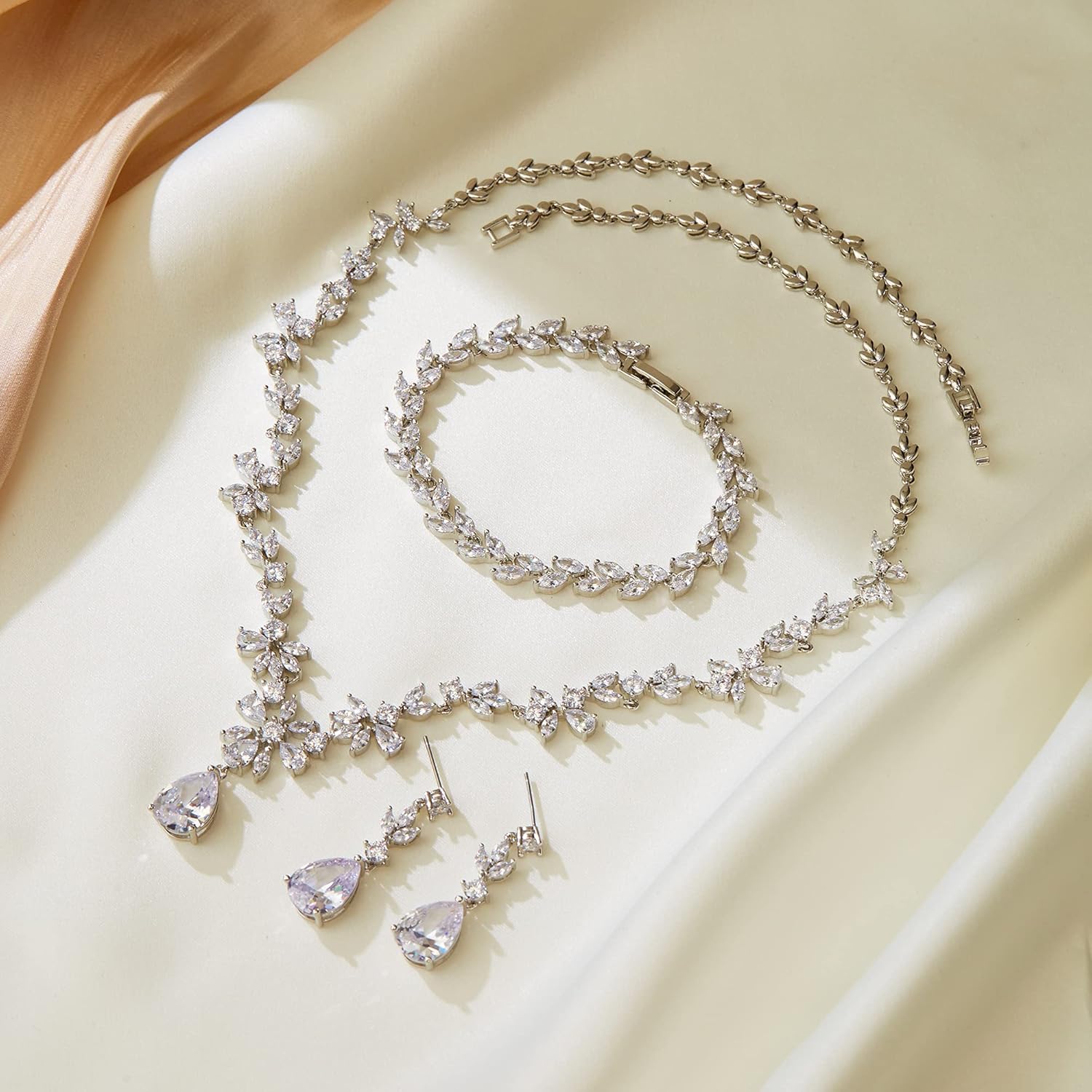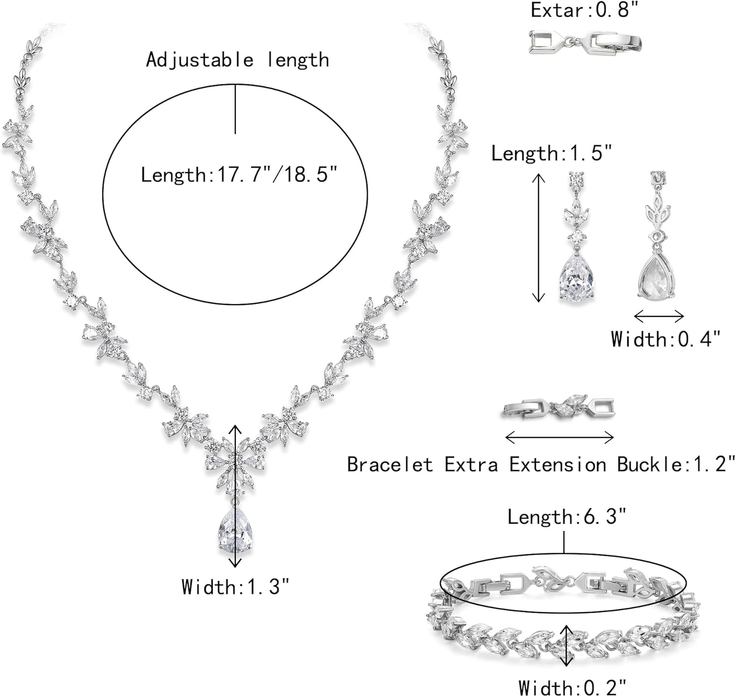 - Design: Gorgeous cubic zirconia jewelry set with teardrop and marquise drop for bridesmaid or brides. Wearing a prom dress, formal gown or casual wear, matching this elegant necklace and earrings bracelet set, it will make you more eye-catching in any spccial occasions.