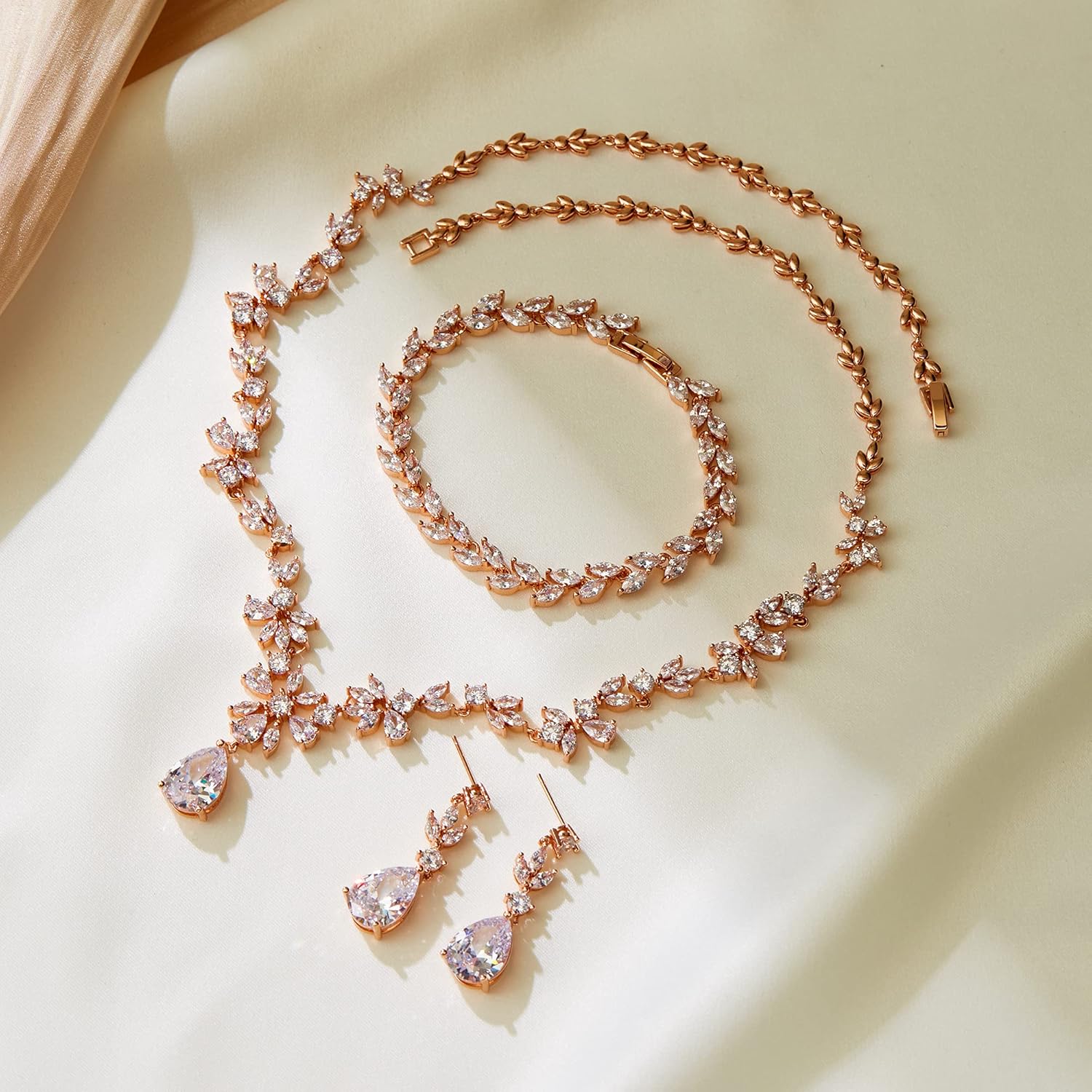 - Design: Gorgeous cubic zirconia jewelry set with teardrop and marquise drop for bridesmaid or brides. Wearing a prom dress, formal gown or casual wear, matching this elegant necklace and earrings bracelet set, it will make you more eye-catching in any spccial occasions.