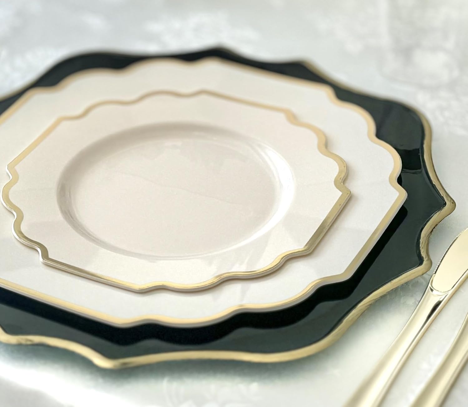 - Premium Disposable Vintage Plastic Plates. Looks like real China. Add a touch of elegance and to your next party or dinner. Where you want an elegant and fancy look with the convenience of disposable.