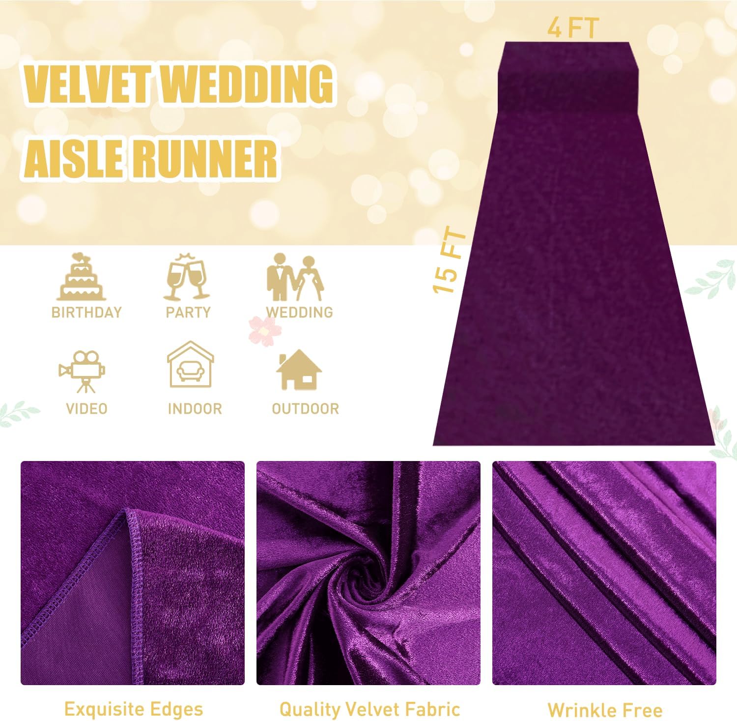 - ✿【Size of Wedding Aisle Runner Rug】The size of aisle runner is 4FT W x15FT L. The velvet fabric wedding aisle runner perfect for indoor and outdoor uses.