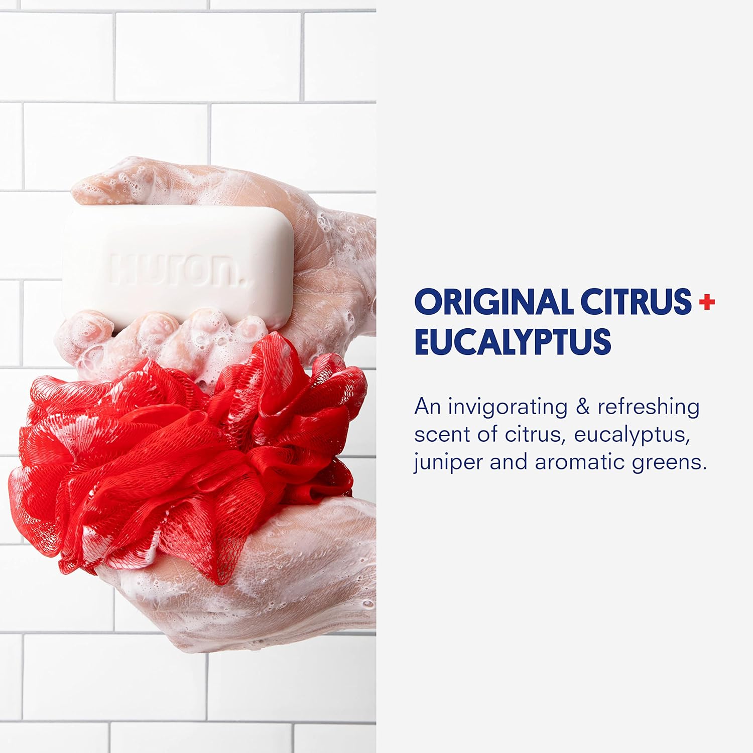 Huron Bar Soap - Citrus + Eucalyptus, 1 Pack - Crisp & Invigorating Scent of Citrus, Eucalyptus, Mint & Aromatic Greens