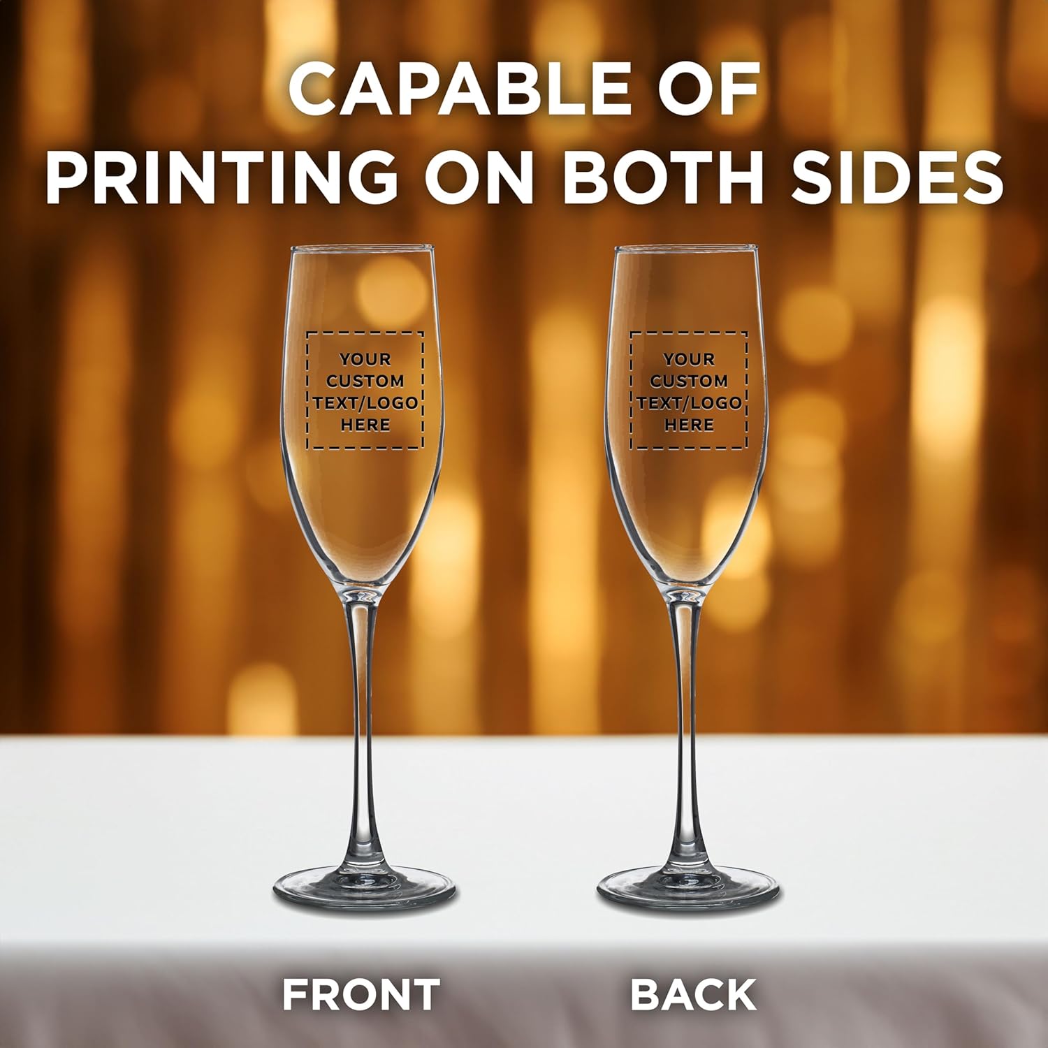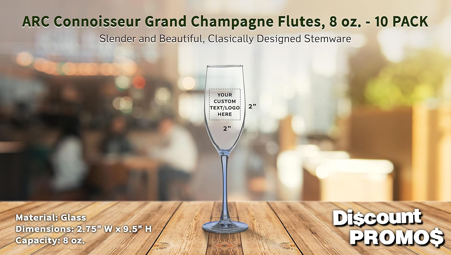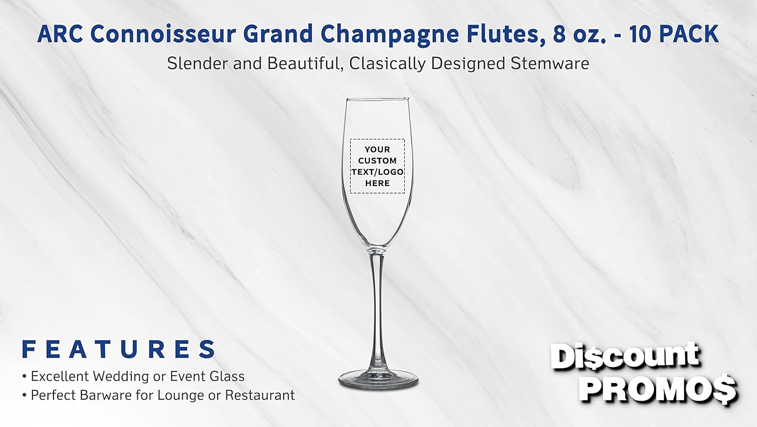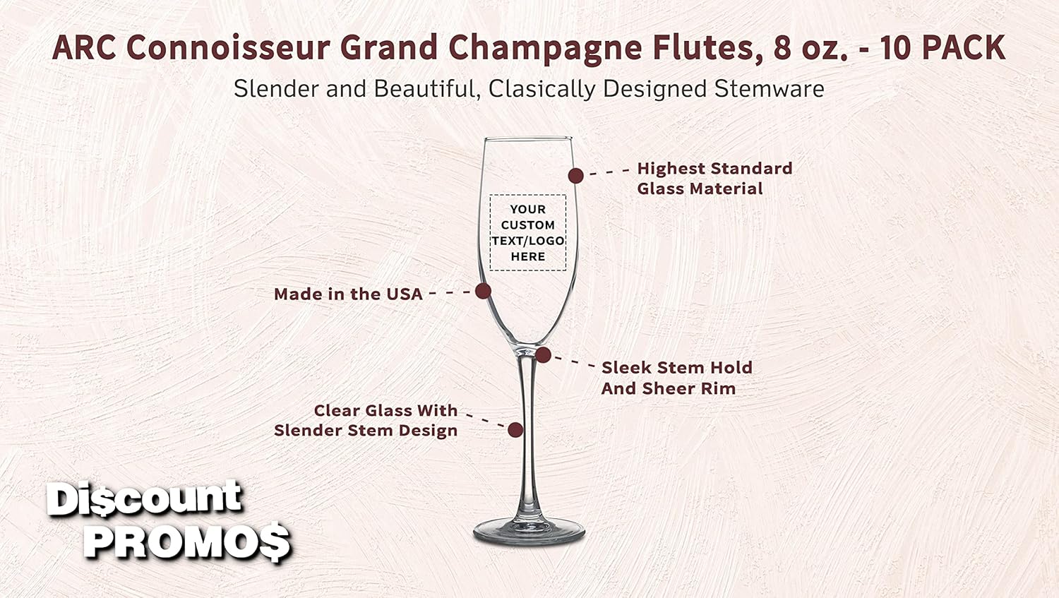 DISCOUNT PROMOS Custom ARC Connoisseur Champagne Flutes 8 oz. Set of 10, Personalized Bulk Pack - Elegant Drinkware for Weddings, Events, & Promotional Gifts - Clear