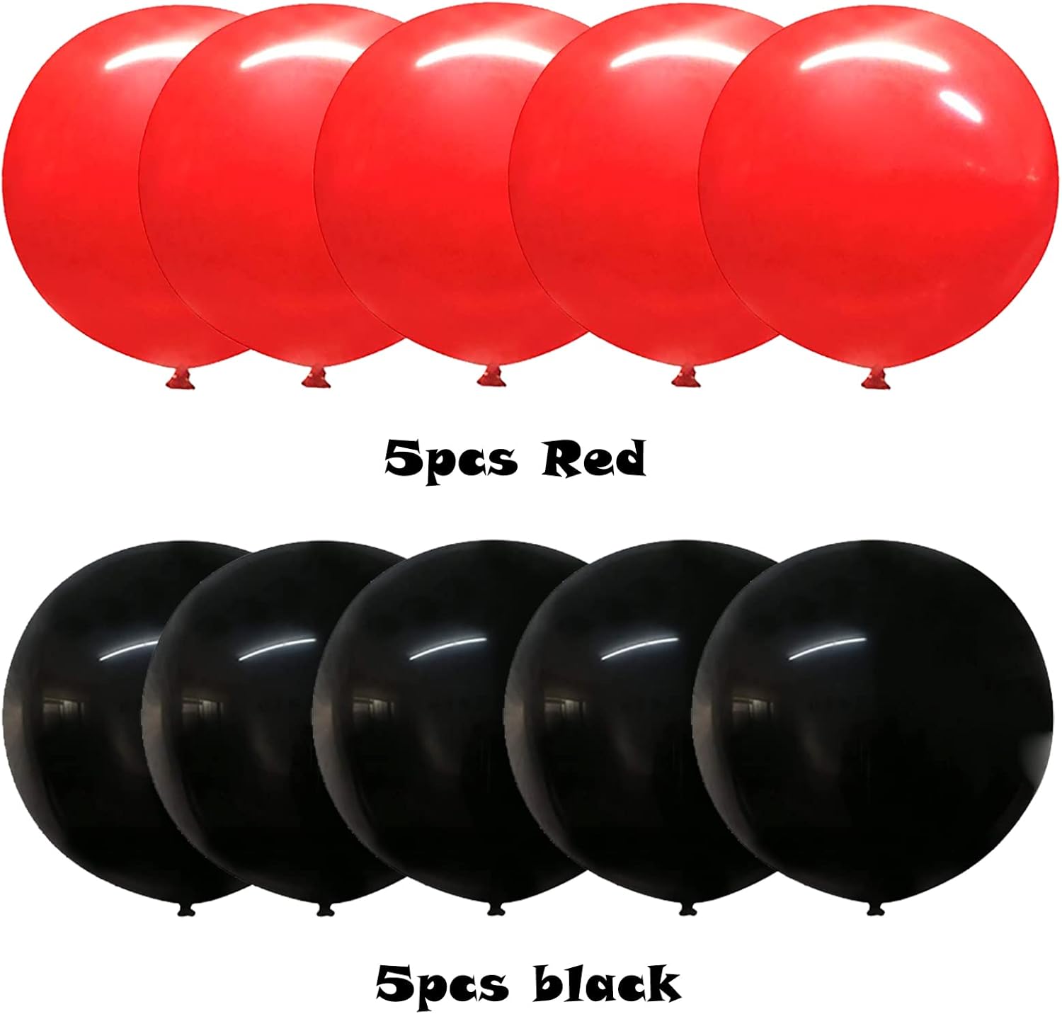 - Standard 24" Balloons: The package contains 10pcs Black and Red 24 inch balloons. Thicker, larger, rounder, not oval, Large enough for helium and air aeration