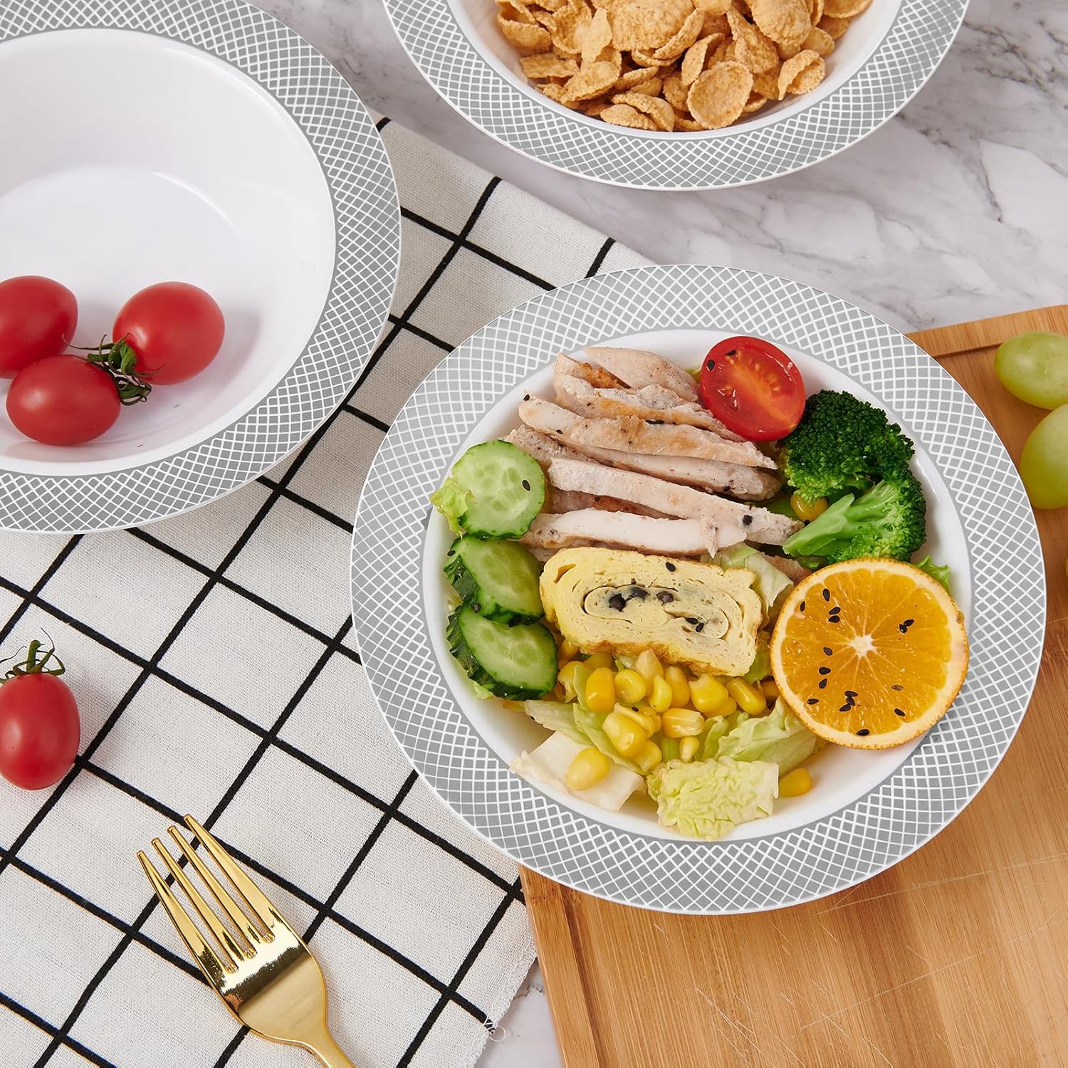 - Reusable and durable bowls: Made of healthy and safe plastic, they are strong and durable. Because the edges of plastic bowls are coated with aluminum foil, they cannot be heated in a microwave