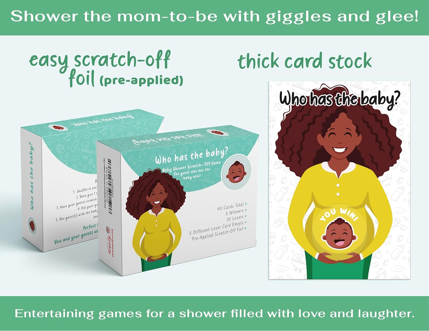 • LAUGH, BOND, AND WIN with our easy to play funny baby shower games for girls and boys; These baby games for a baby shower will be a great ice breaker; No special preparation is necessary