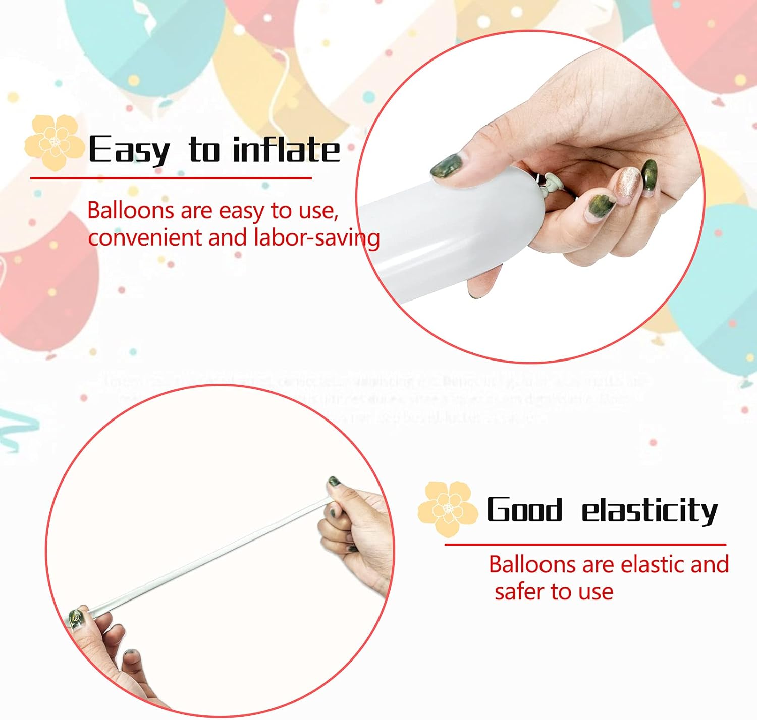 - Easy to inflate with a balloon pump; leave space and release air to avoid popping